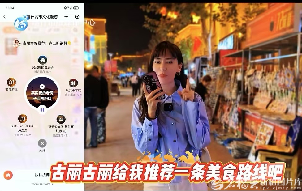 喀什融媒體記者體驗(yàn)“AI導(dǎo)游古麗”的功能。據(jù)喀什融媒體中心