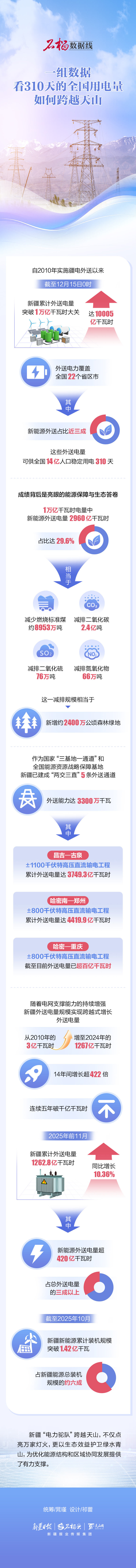 新疆“電力駝隊”跨越天山,不僅點亮萬家燈火,更以生態(tài)效益護衛(wèi)綠水青山,為優(yōu)化能源結(jié)構(gòu)和區(qū)域協(xié)同發(fā)展提供了有力支撐。