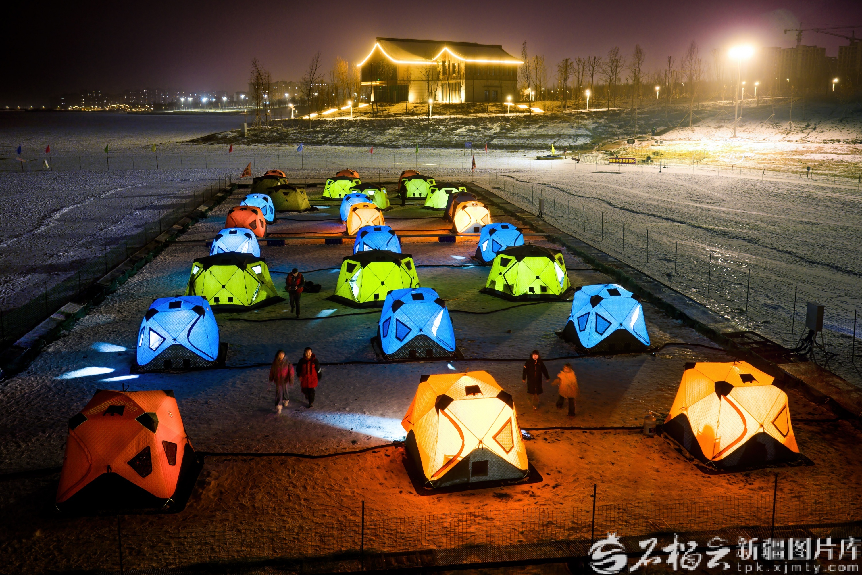 1月12日,游客夜游金龍湖,感受冰上露營樂趣。閔勇 攝