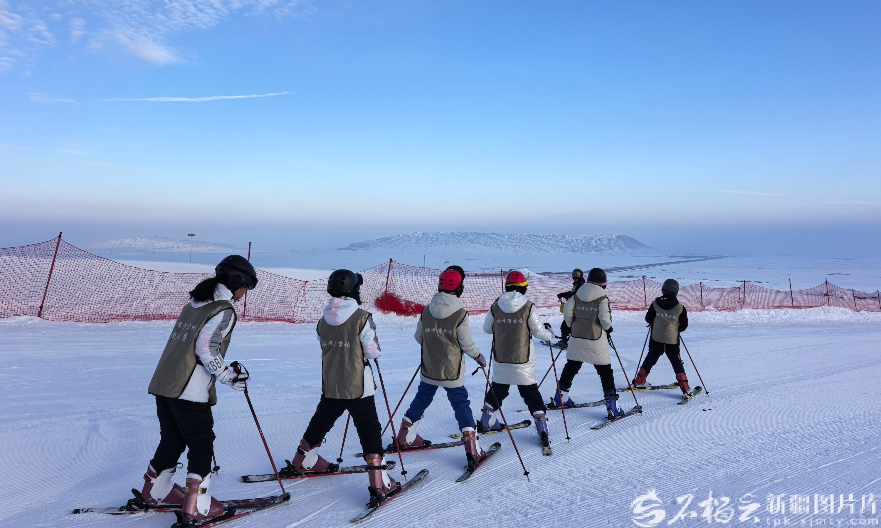 1月11日,在克拉瑪依市獨(dú)山子區(qū)冰峰滑雪場的見習(xí)道上,一批新學(xué)員在專業(yè)教練的帶領(lǐng)下,排成一隊,進(jìn)行基礎(chǔ)的滑雪犁式訓(xùn)練??死斠朗歇?dú)山子區(qū)文化體育廣播電視和旅游局供圖