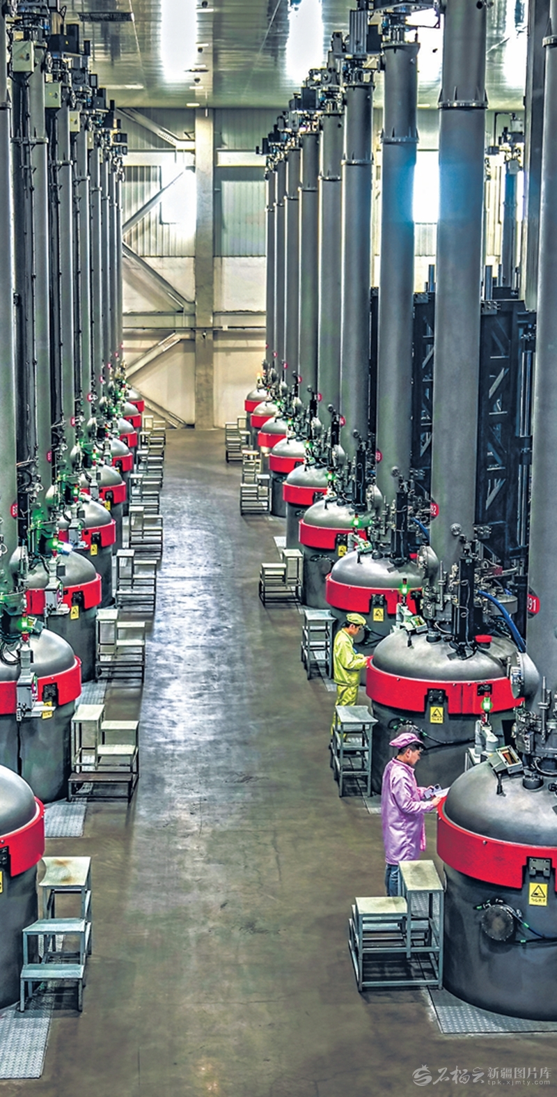 2月24日,位于克拉瑪依市烏爾禾硅基新材料產(chǎn)業(yè)園的新疆晶品新能源有限公司生產(chǎn)車間,技術(shù)人員操作控制面板,保障單晶爐高效穩(wěn)定運(yùn)行。閔勇攝