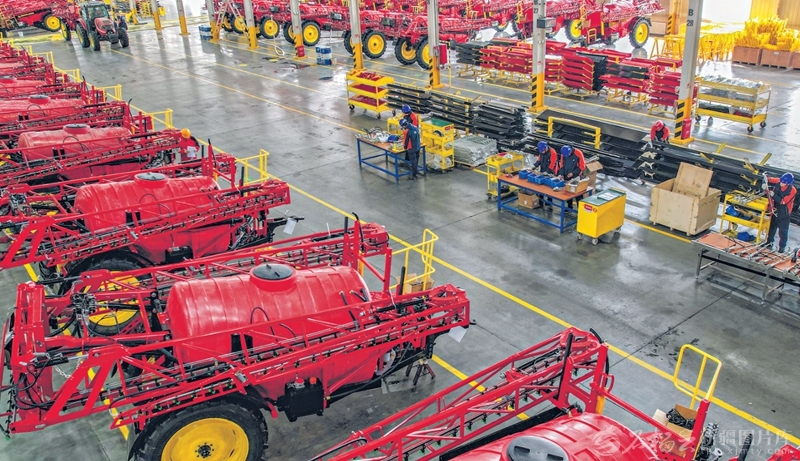 2月25日,位于烏蘇市的新疆缽施然智能農(nóng)機(jī)股份有限公司生產(chǎn)車間里機(jī)器轟鳴,工人們各司其職全力趕農(nóng)機(jī)訂單。李仁錫攝
