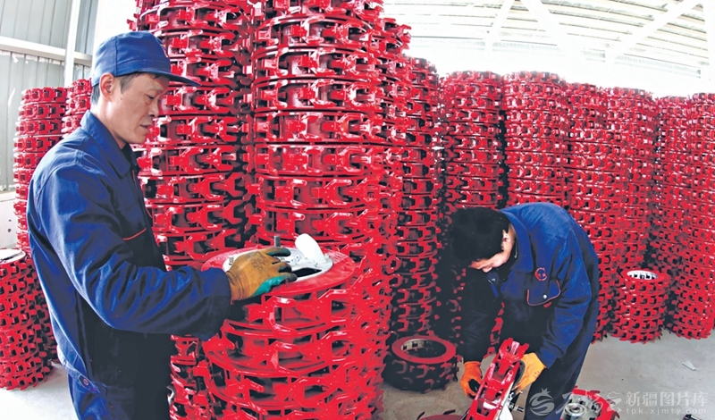 2月24日,位于鐵門關(guān)經(jīng)濟技術(shù)開發(fā)區(qū)的新疆天誠農(nóng)機具制造有限公司生產(chǎn)車間里,工人在安裝精量播種機的配件。今年以來,該公司已接到不少疆內(nèi)外訂單,目前,正開足馬力生產(chǎn),全力沖刺首季“開門紅”。栗衛(wèi)平攝