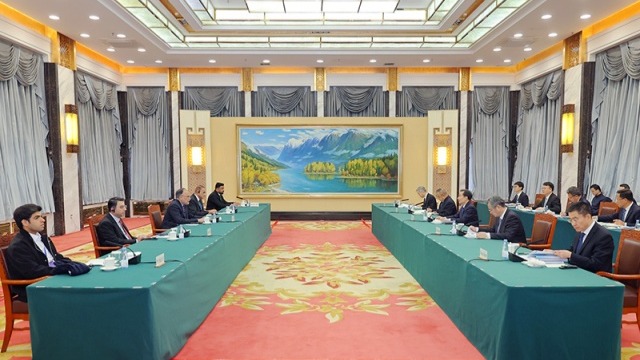陳小江艾爾肯·吐尼亞孜會見巴基斯坦規(guī)劃、發(fā)展與特別倡議部部長阿赫?!ひ量税蜖?