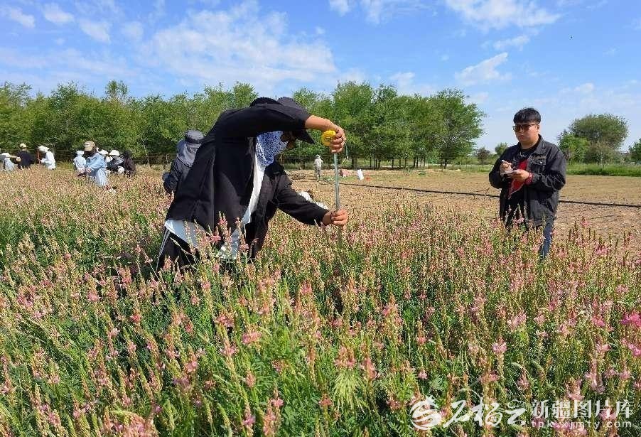 新疆農(nóng)業(yè)大學(xué)學(xué)生在該校陸港校區(qū)試驗(yàn)田進(jìn)行成果檢測。新疆農(nóng)業(yè)大學(xué)供圖