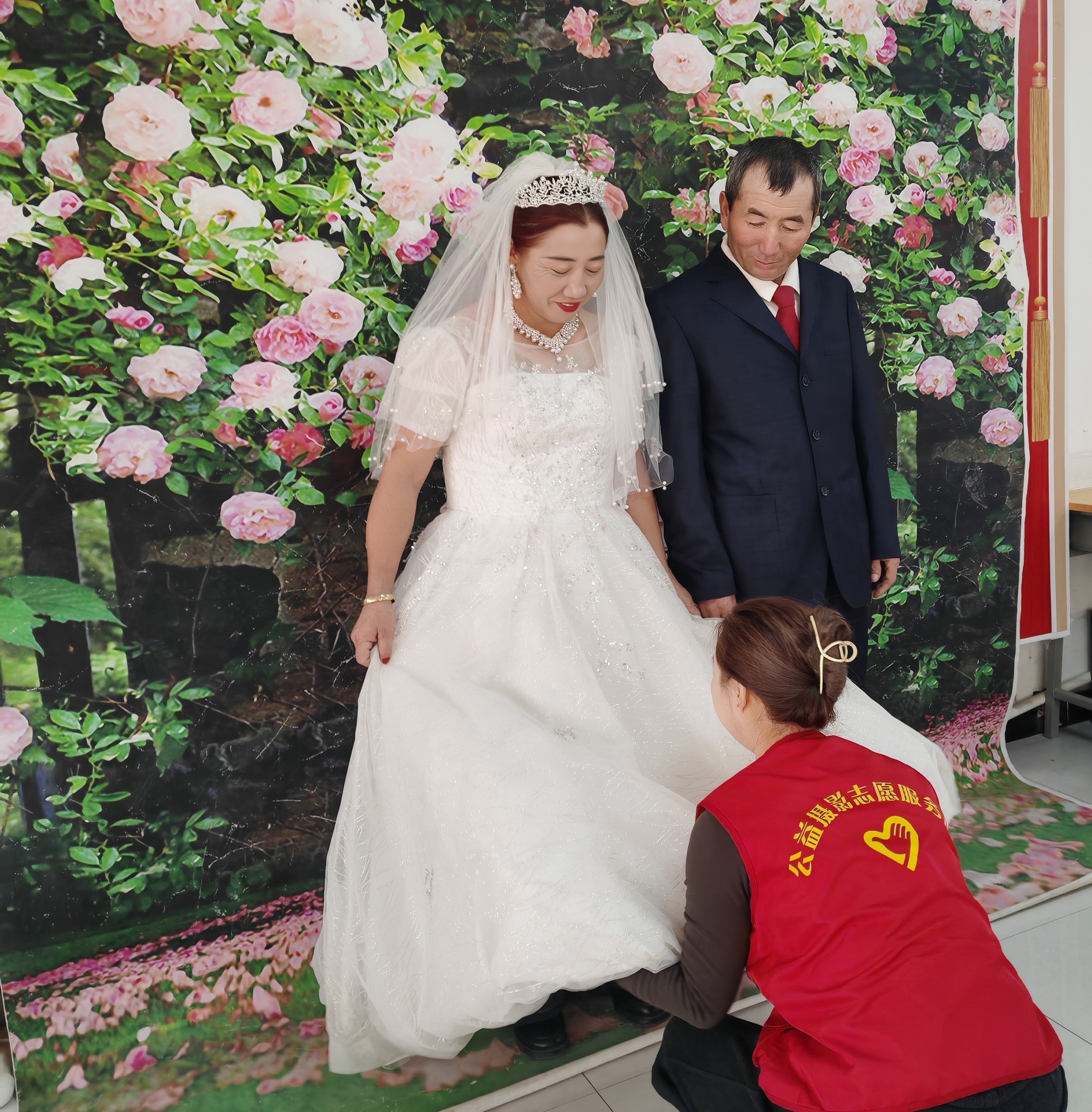 在這些“新人”中,有退休的護(hù)邊員,也有仍在邊境線上行走的現(xiàn)役護(hù)邊員。鏡頭前,老護(hù)邊員們略顯局促卻滿眼幸福。他們用雙腳丈量祖國(guó)的邊境線,青春在風(fēng)沙雪雨中褪色,愛(ài)情在聚少離多中沉淀。今天婚紗取代了巡邊服,潔白頭紗覆蓋著道道皺紋交織的臉,他們守護(hù)的邊關(guān)此刻正以特別的方式,回饋給他們一場(chǎng)溫柔的歲月儀式。