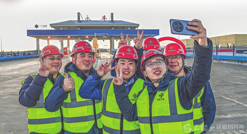 12月26日,烏尉高速公路施工人員在永豐匝道收費(fèi)站合影。天山網(wǎng)-新疆日?qǐng)?bào)記者韓亮攝