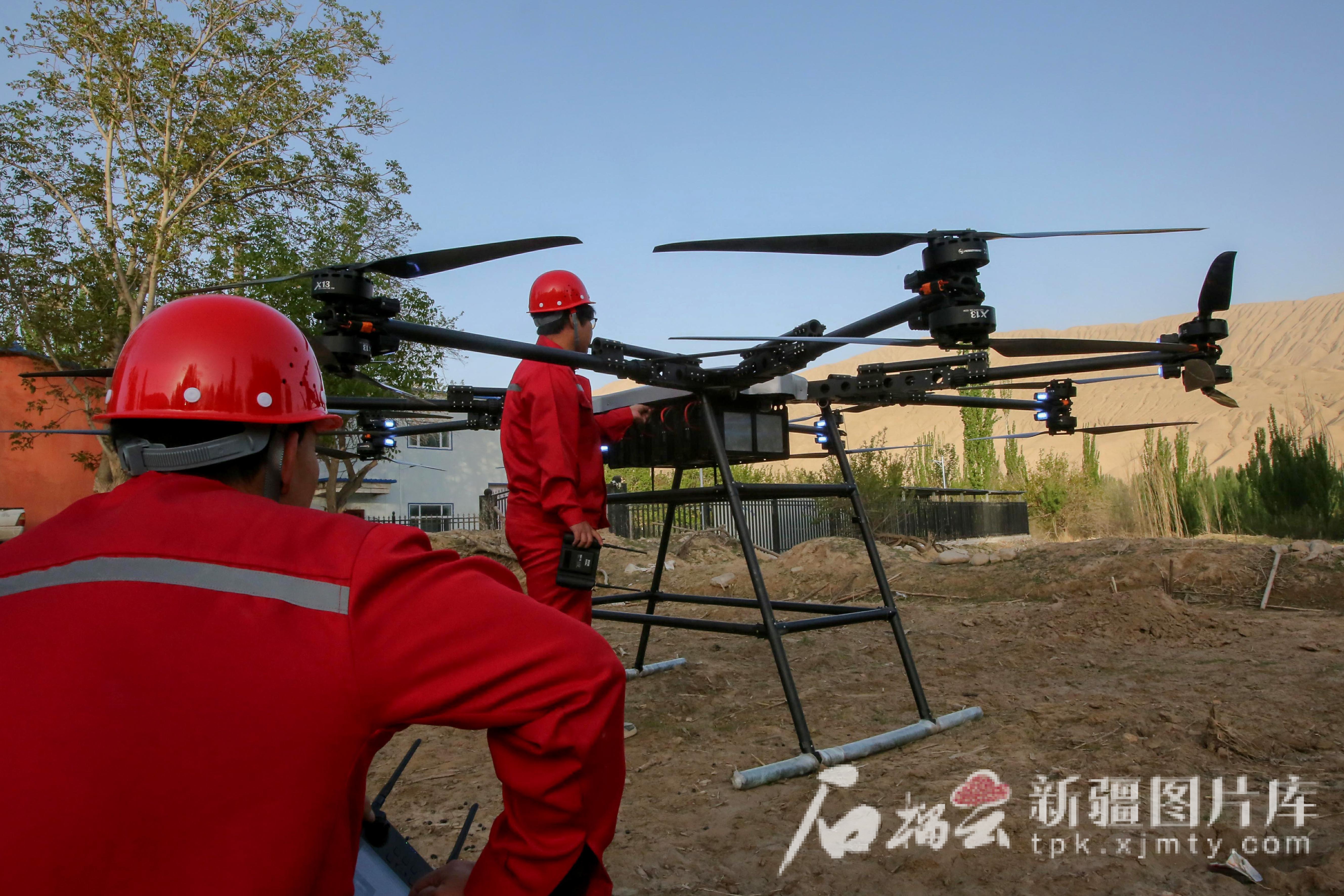5月1日,無人機飛手在檢查無人機準(zhǔn)備吊運物資。
