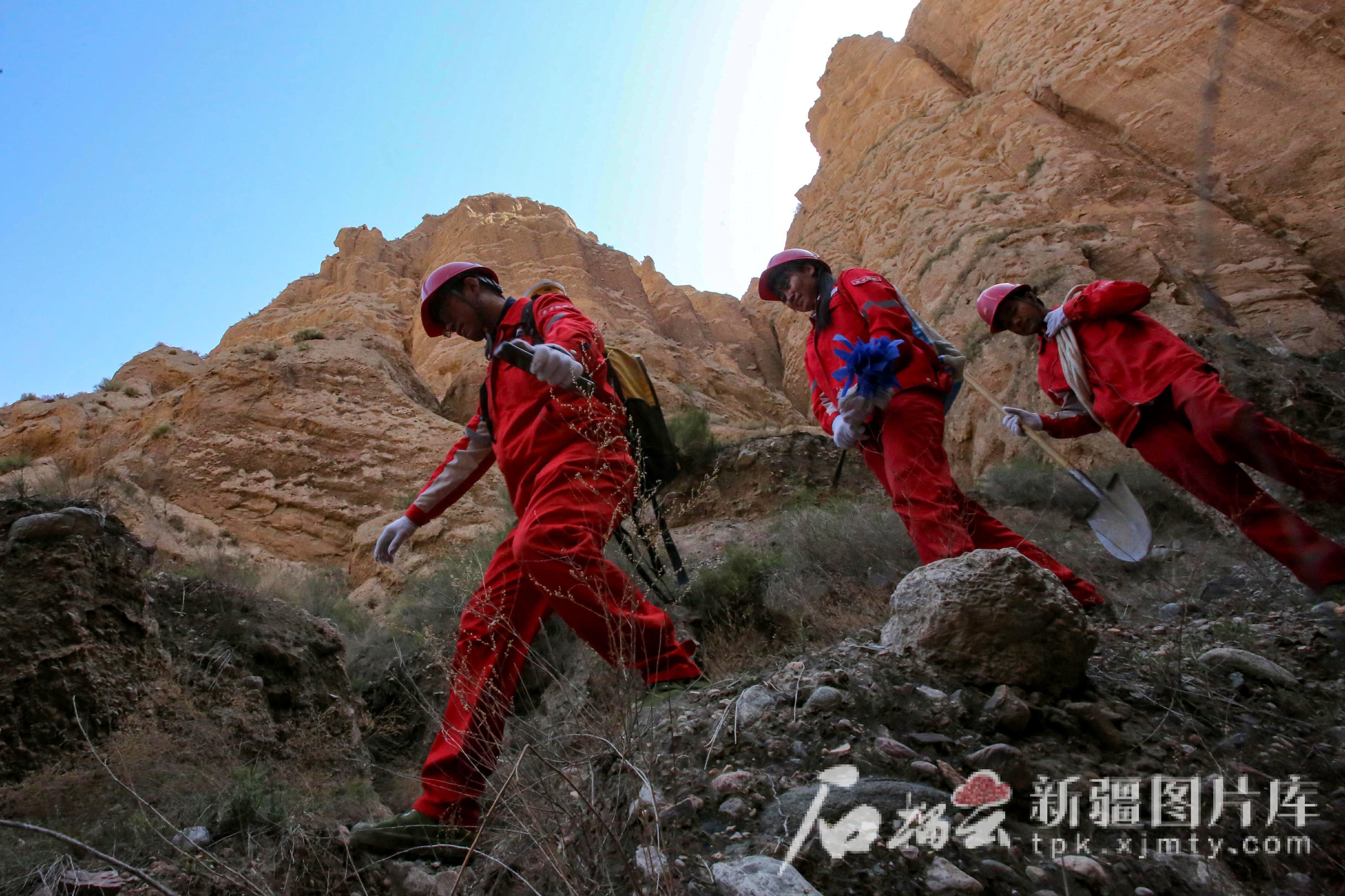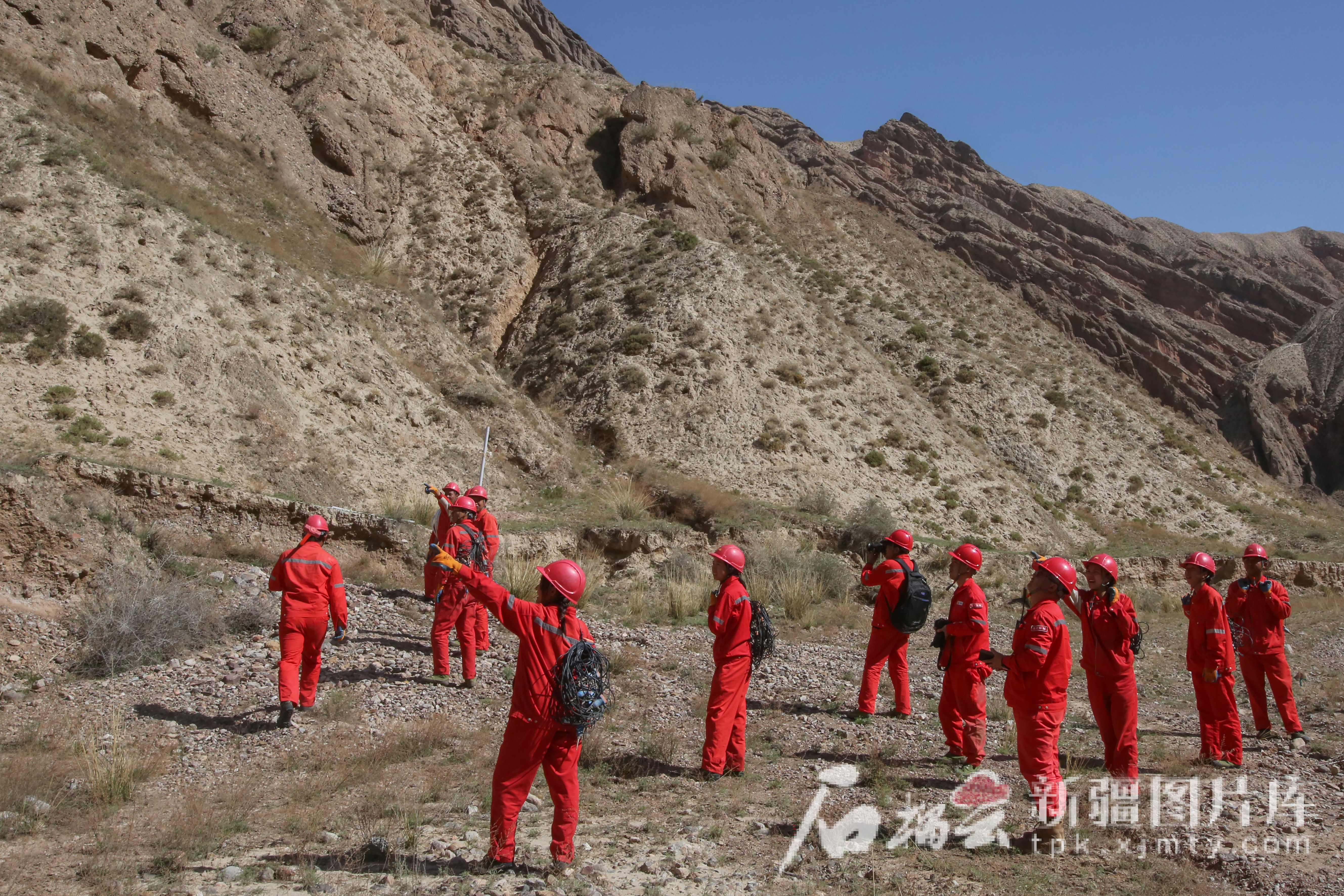 4月27日,物探工人在昆侖山巔尋找確認測量點位。