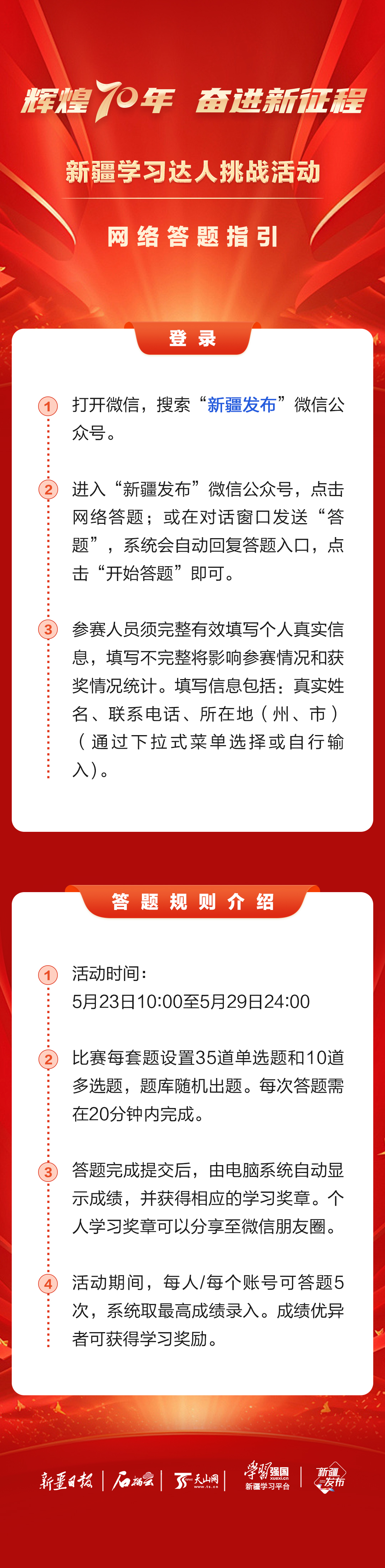 長圖丨“輝煌70年 奮進新征程” 新疆學習達人挑戰(zhàn)活動網(wǎng)絡答題指引