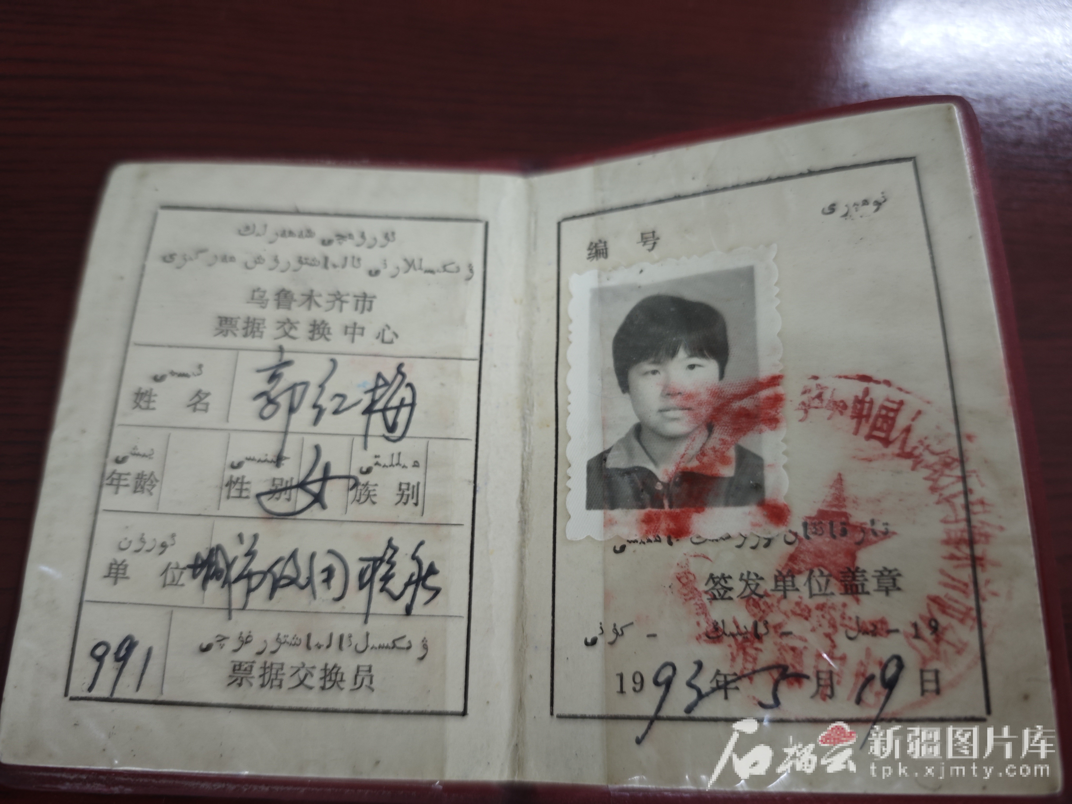 1993年由原中國人民銀行烏魯木齊市分行簽發(fā)的票據(jù)交換員證。圖/烏魯木齊銀行提供