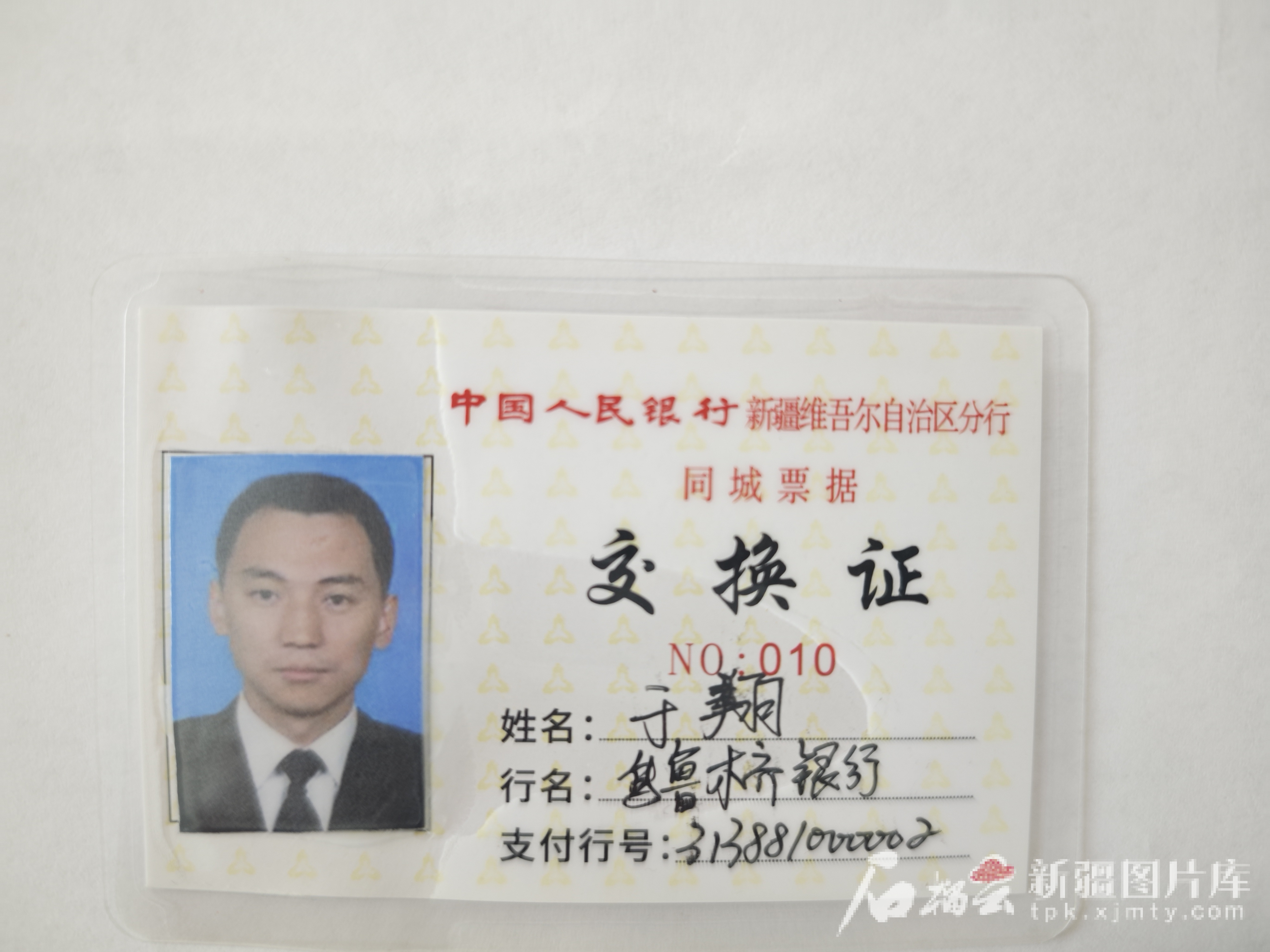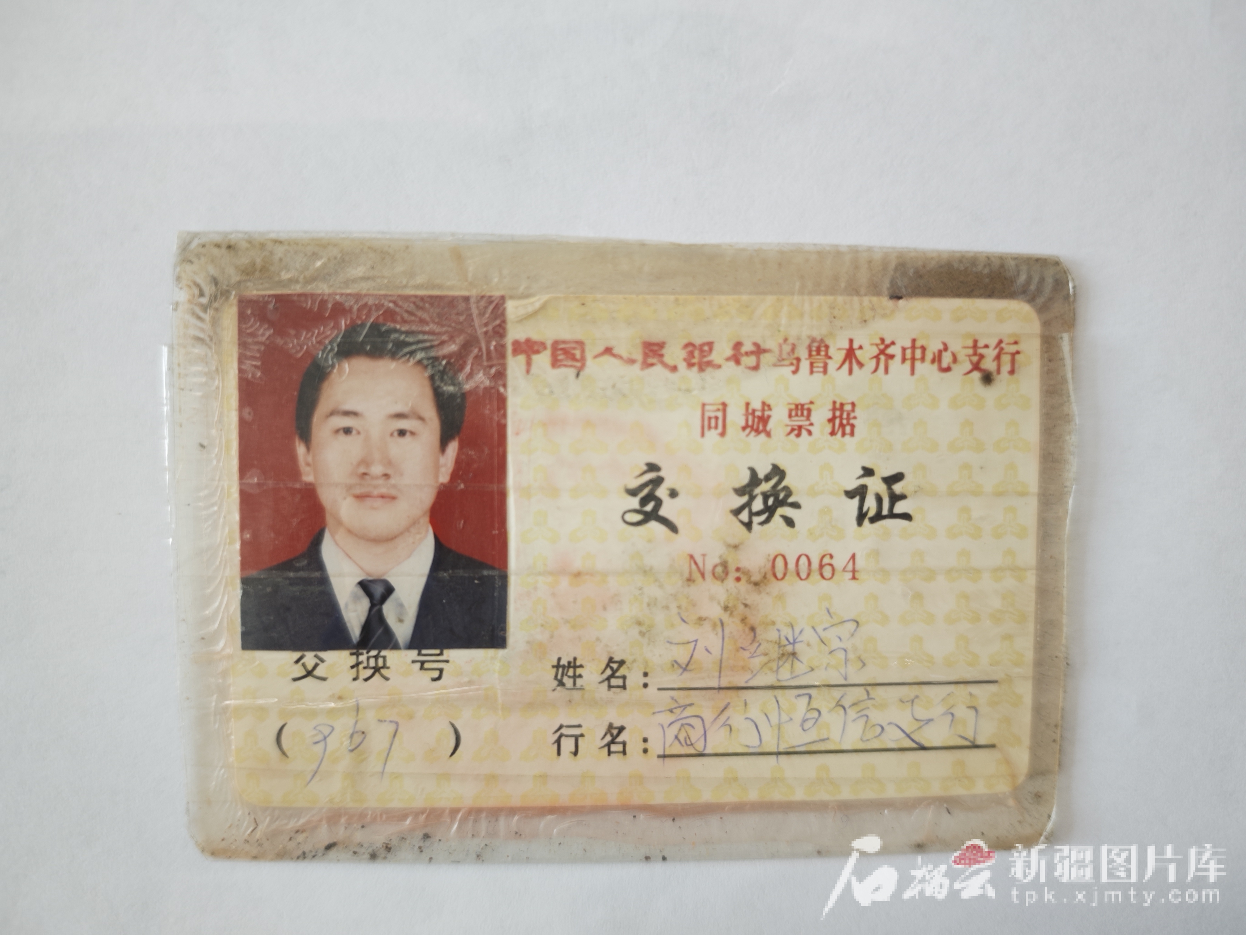 2000年前后由原中國人民銀行烏魯木齊中心支行簽發(fā)的票據(jù)交換員證。圖/烏魯木齊銀行提供