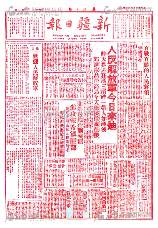 走進新疆日報報史館,在“紅色基因一脈相承”展區(qū),一張?zhí)准t印刷的全版《新疆日報》,永久記錄著1949年10月20日人民解放軍進駐迪化(今烏魯木齊)那“換了人間”的歷史一幕。這抹紅色穿越76年時光,仍傳遞著各族人民歡迎雄師入城時的喜悅與豪情?!度嗣窠夥跑娊袢諄淼稀返膱蟮廊绱擞浭觯骸爱斎嗣窠夥跑娪赏卖敺瑔⒊涛鱽淼南鞒龊?,瞬息之間,整個迪化市便掀起一股歡欣鼓舞的熱浪,大街小巷的每家門口,都懸掛著莊嚴的五星國旗,遠望市區(qū),變成了紅旗的大海洋。在每個十字街頭的雄偉彩樓下,人群熙攘,川流不息,圍成了人山人海?!?/p>