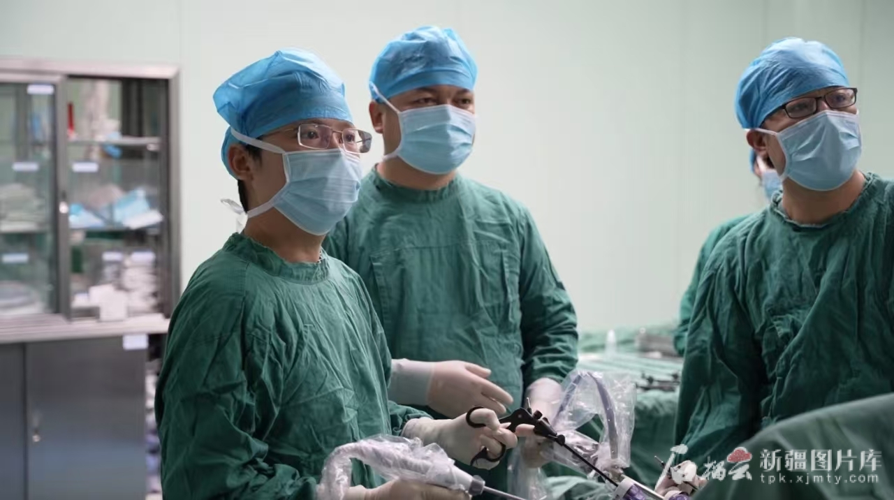 在他的帶領(lǐng)下,普外科團(tuán)隊(duì)開展了眾多微創(chuàng)手術(shù),其中“腹腔鏡下直腸懸吊術(shù)”治療直腸重度脫垂、熒光腹腔鏡低位直腸癌保肛手術(shù)和“腹腔鏡下遠(yuǎn)端胃癌根治術(shù)(R型吻合)”治療胃癌,分別為新源縣和伊犁哈薩克自治州首例。