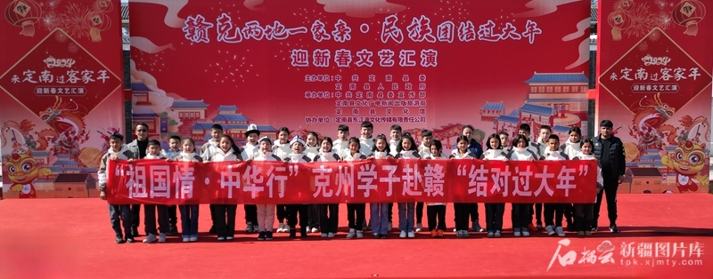 2024年2月6日,江西援疆前方指揮部組織克州30名少年兒童到江西開展“贛克兩地一家親·民族團結(jié)過大年”足球冬令營活動。圖為孩子們在江西省定南縣參加迎新春文藝匯演后合影留念(2024年2月12日攝)。圖片由江西援疆前方指揮部提供