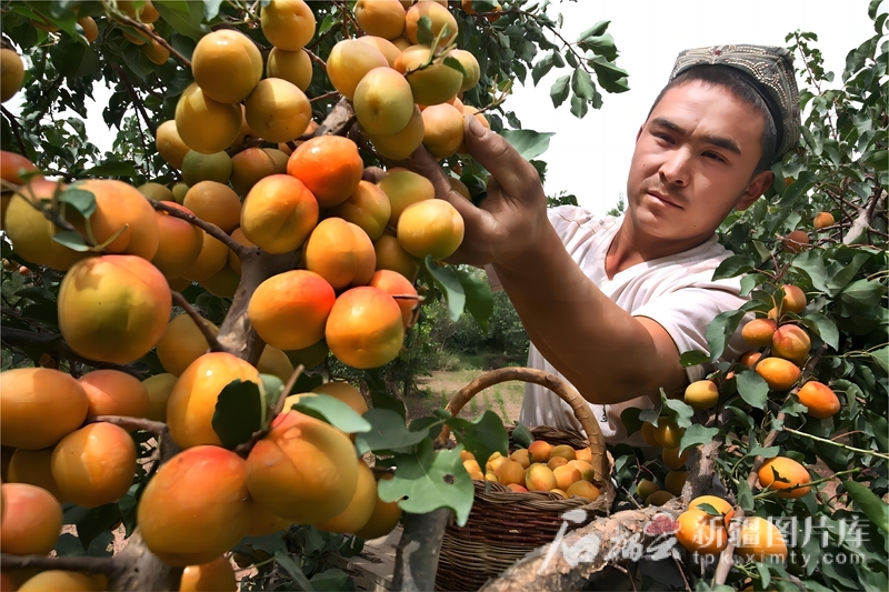 江西援疆實施阿克陶縣林果提質(zhì)增效示范工程。圖為果農(nóng)在采收江西科技援助培育的特色良種巴仁杏(2022年6月25日攝)。圖片由江西援疆前方指揮部提供