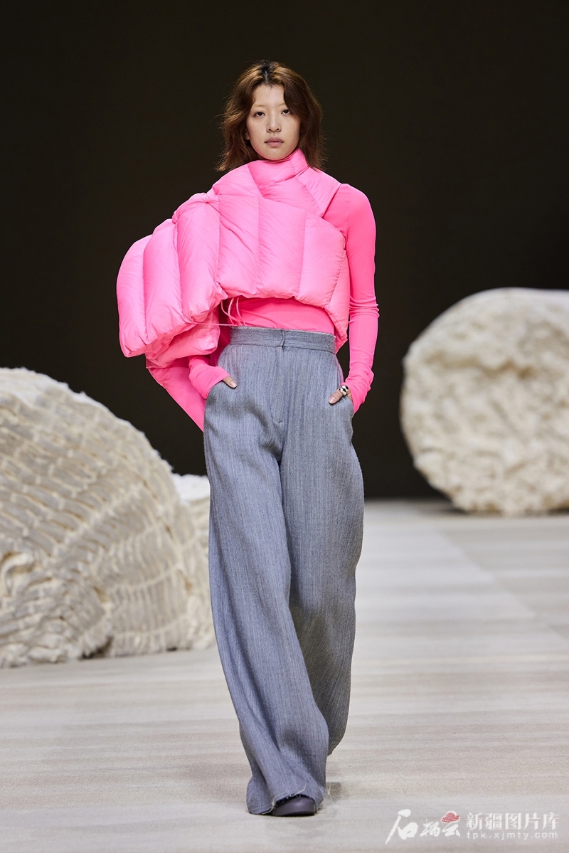2025春夏上時裝周秀場,展著原產(chǎn)喀什的棉裝飾品(2024年月9日攝)。