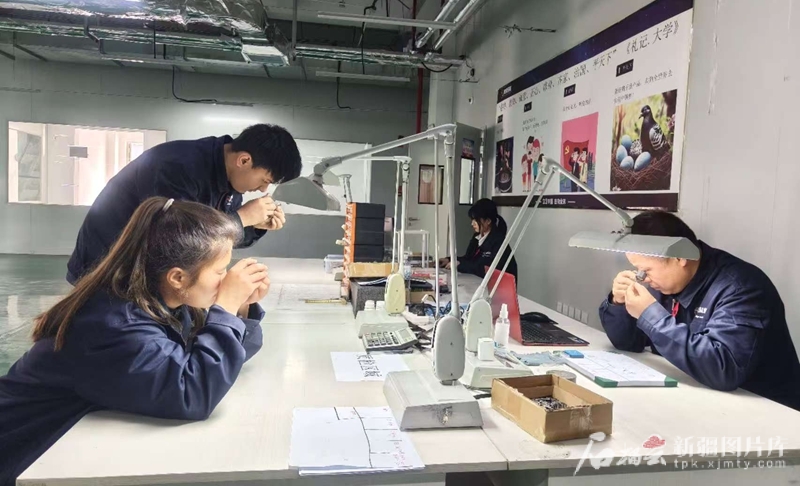 上海一家珠寶有限公司員工在進行產(chǎn)品質(zhì)量鑒定(6月18日攝)。該公司在莎車縣建立了國內(nèi)最大的單體CVD人工培育鉆石工廠。