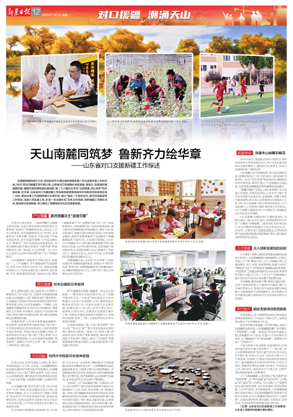 對(duì)口援疆 潮涌天山丨天山南麓同筑夢(mèng) 魯新齊力繪華章——山東省對(duì)口支援新疆工作綜述
