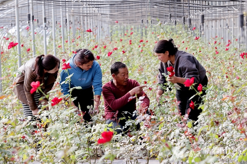 在英吉沙縣龍甫鄉(xiāng),山東農(nóng)業(yè)專家指導(dǎo)當(dāng)?shù)厝罕姺N植玫瑰(5月16日攝)。