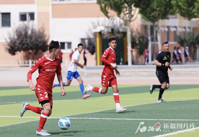 山東省對(duì)口支援新疆工作指揮部主辦的第二屆“喀什杯”國(guó)際青少年足球邀請(qǐng)賽比賽現(xiàn)場(chǎng)(6月25日攝)。