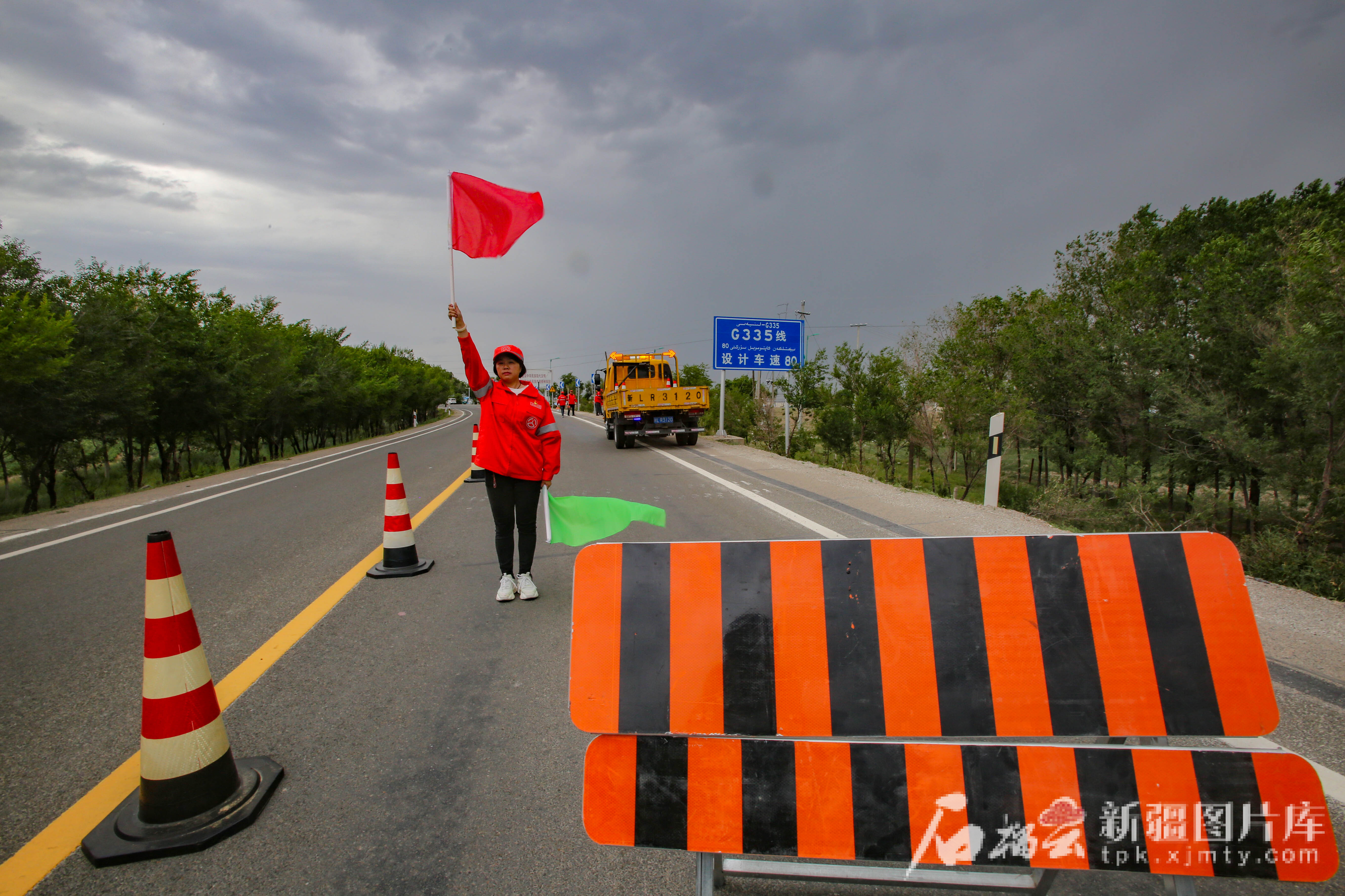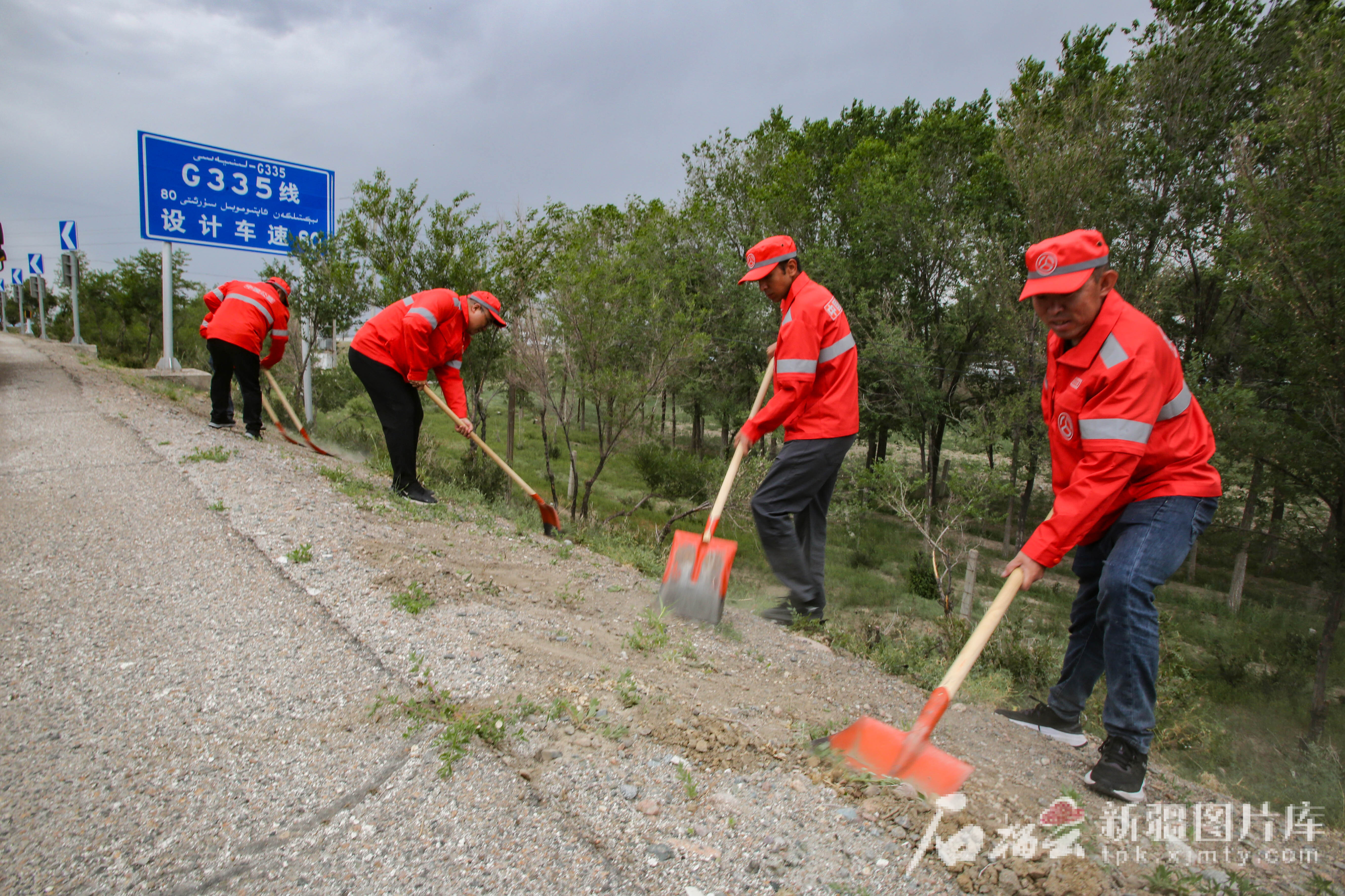 7月6日,哈密公路事業(yè)發(fā)展中心巴里坤養(yǎng)護(hù)所工作人員在G335線進(jìn)行養(yǎng)護(hù)作業(yè)。