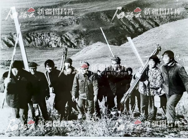 此次參加新疆日報社(集團)“新疆記憶”老照片征集活動,沈天翔提供了一組沙灣紅旗渠建設(shè)的照片。“當(dāng)年,現(xiàn)今沙灣市西戈壁鎮(zhèn)有一片幾萬畝荒地因缺水無法耕種。1974年,當(dāng)?shù)匾?guī)劃從天山深處修建一條約7公里的水渠,引雪水澆灌荒地。”他回憶道,作為沙灣文化部門工作人員,他帶著一臺單位“支援”的120相機前往建設(shè)工地。此后4年,這臺相機陪他跑遍工地每個角落,記錄無數(shù)難忘瞬間。