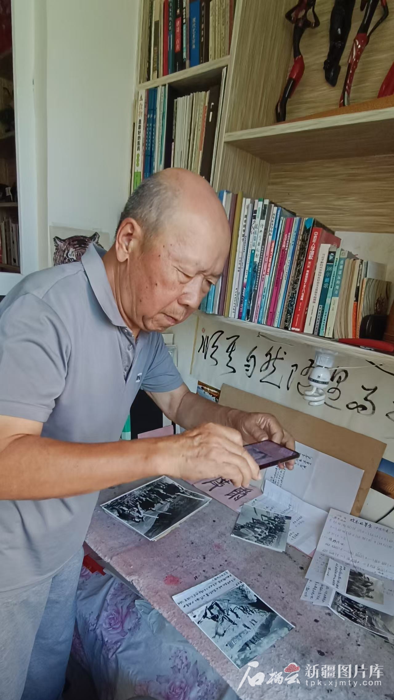 沈天翔在整理興修紅旗渠的老照片。天山網(wǎng)-新疆日報記者 任江攝