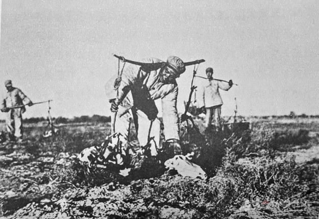 一望無際的荒灘上雜草叢生,幾名戴著帽子、身著棉衣的男子挑著扁擔在四周搜尋,前面一名挑著扁擔的男子側(cè)身撿拾地上的一個馬頭骸骨,臉上露出欣喜的笑容……這是拍攝于1952年的一張照片,照片中的幾名男子是新疆八一農(nóng)學院(現(xiàn)新疆農(nóng)業(yè)大學)的教師。他們在荒郊野外尋找動物骸骨,是為了制作教學標本。