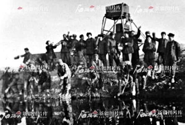 1955年10月29日,克拉瑪依一號井噴出工業(yè)油流,標(biāo)志著新中國的第一個大油田誕生。鉆探隊員們高興地在噴射出的原油形成的油池邊合影。 圖片由新疆圖片庫提供