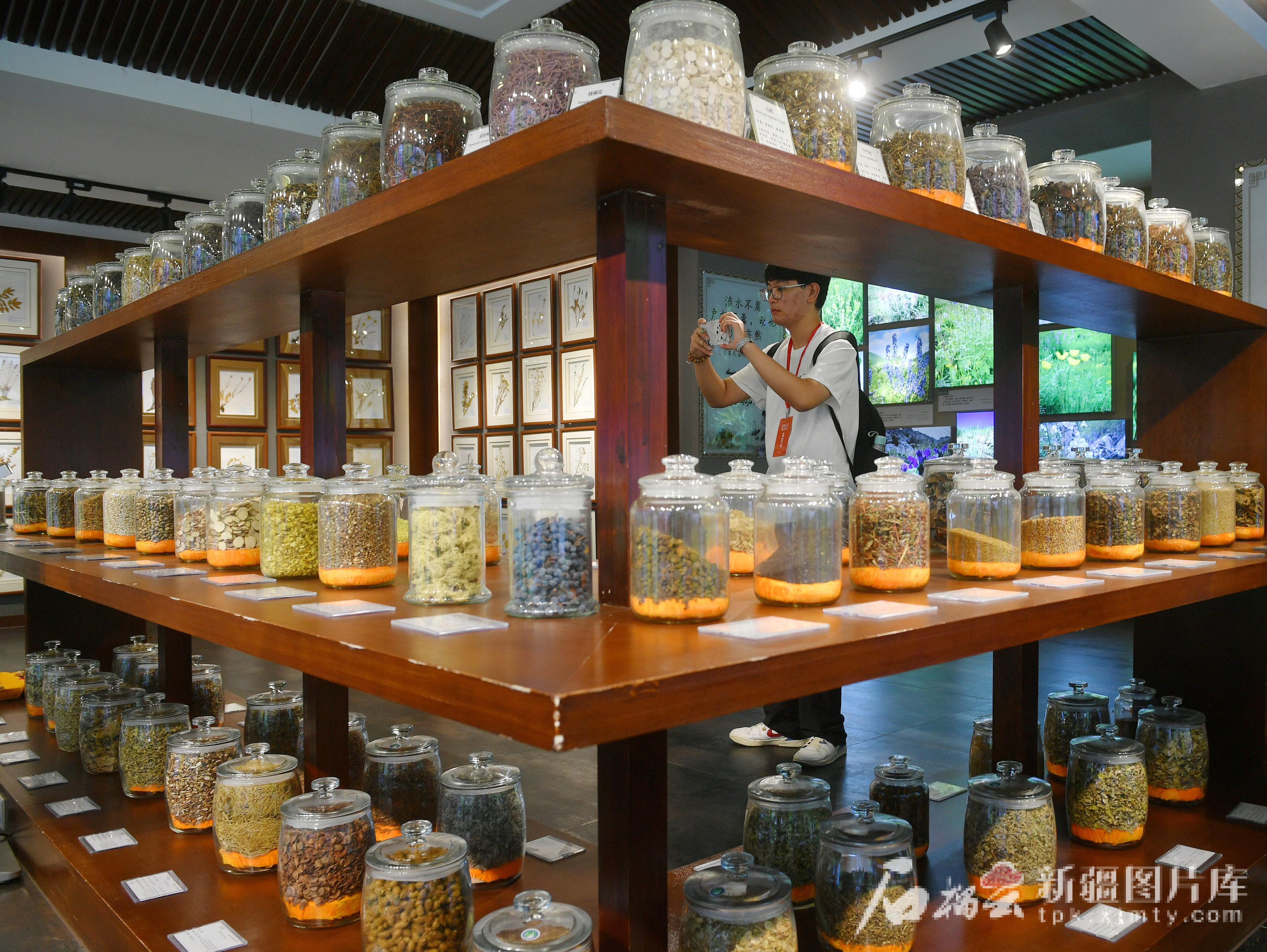7月25日,游客在阿爾泰山中草藥博物館參觀。