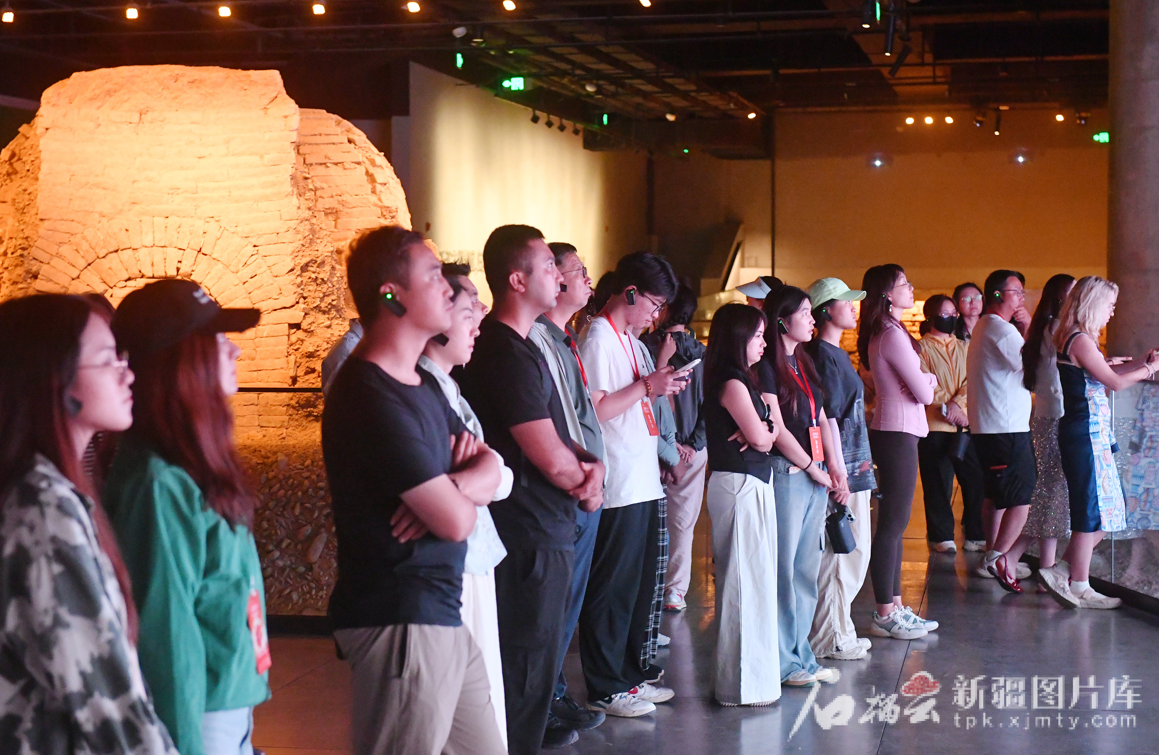 7月26日,采訪團(tuán)一行在龜茲魏晉古墓遺址博物館參觀。