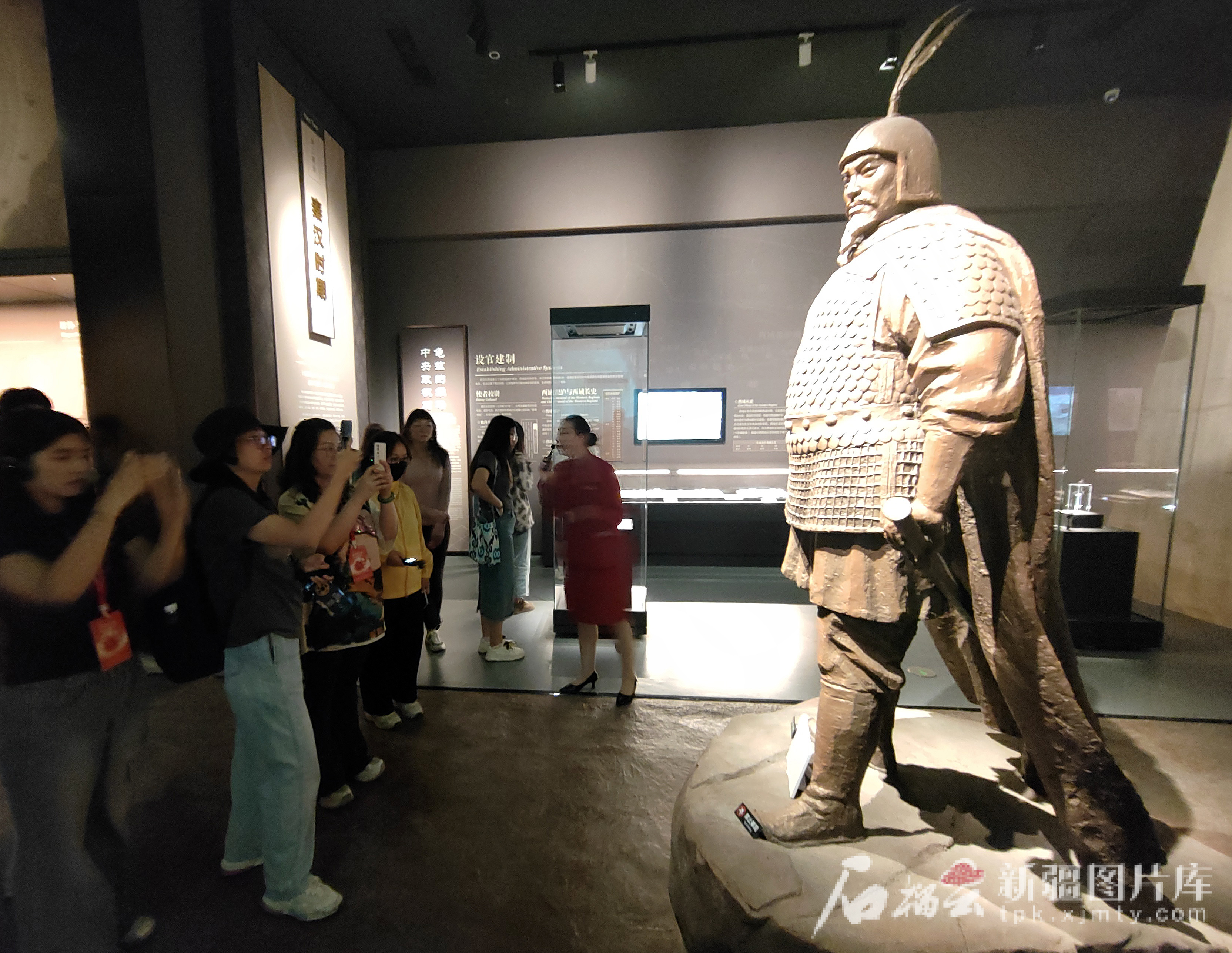 7月26日,采訪團(tuán)一行在龜茲博物館鄭吉雕像前駐足拍攝。