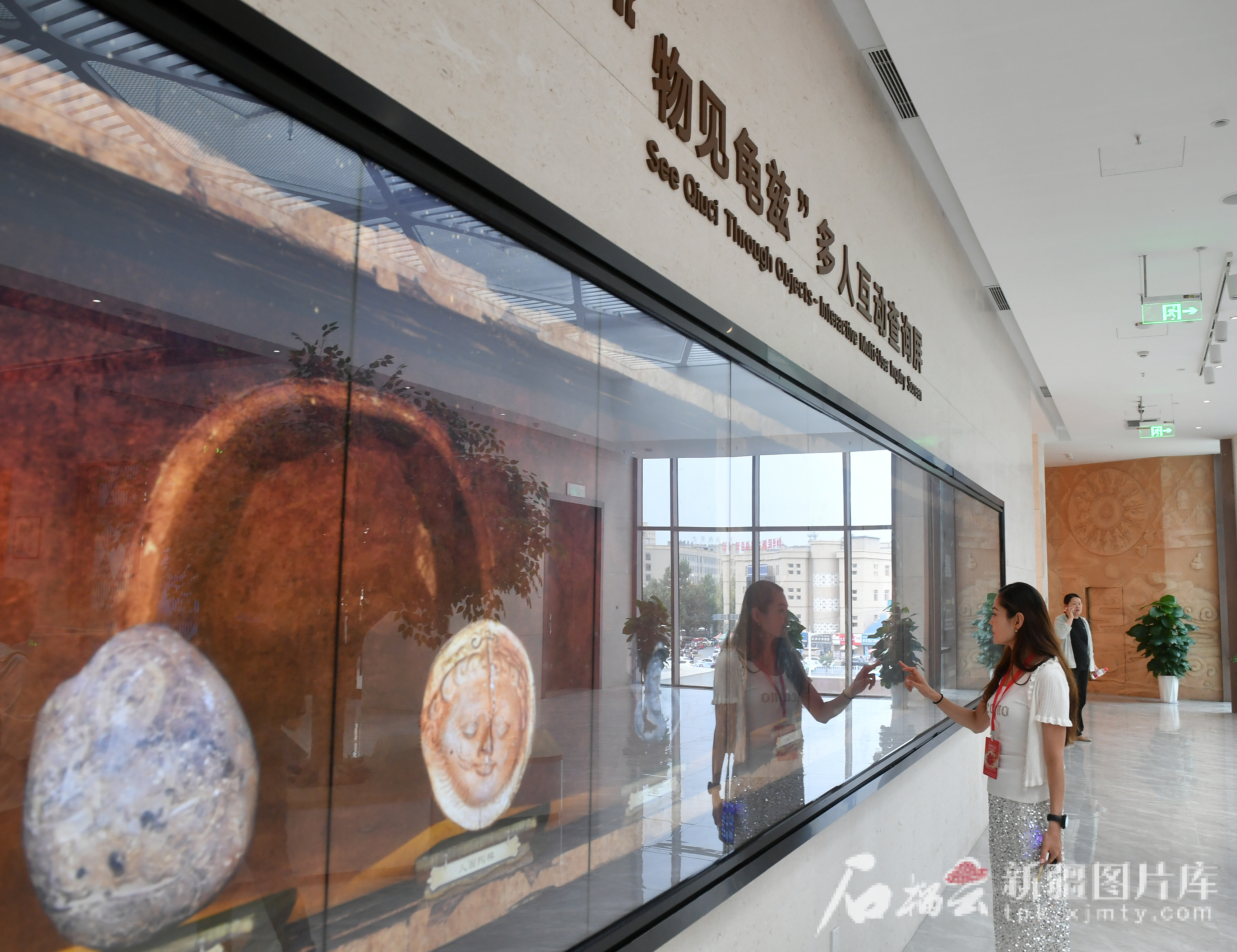 7月26日,采訪團(tuán)成員在龜茲博物館拍攝。