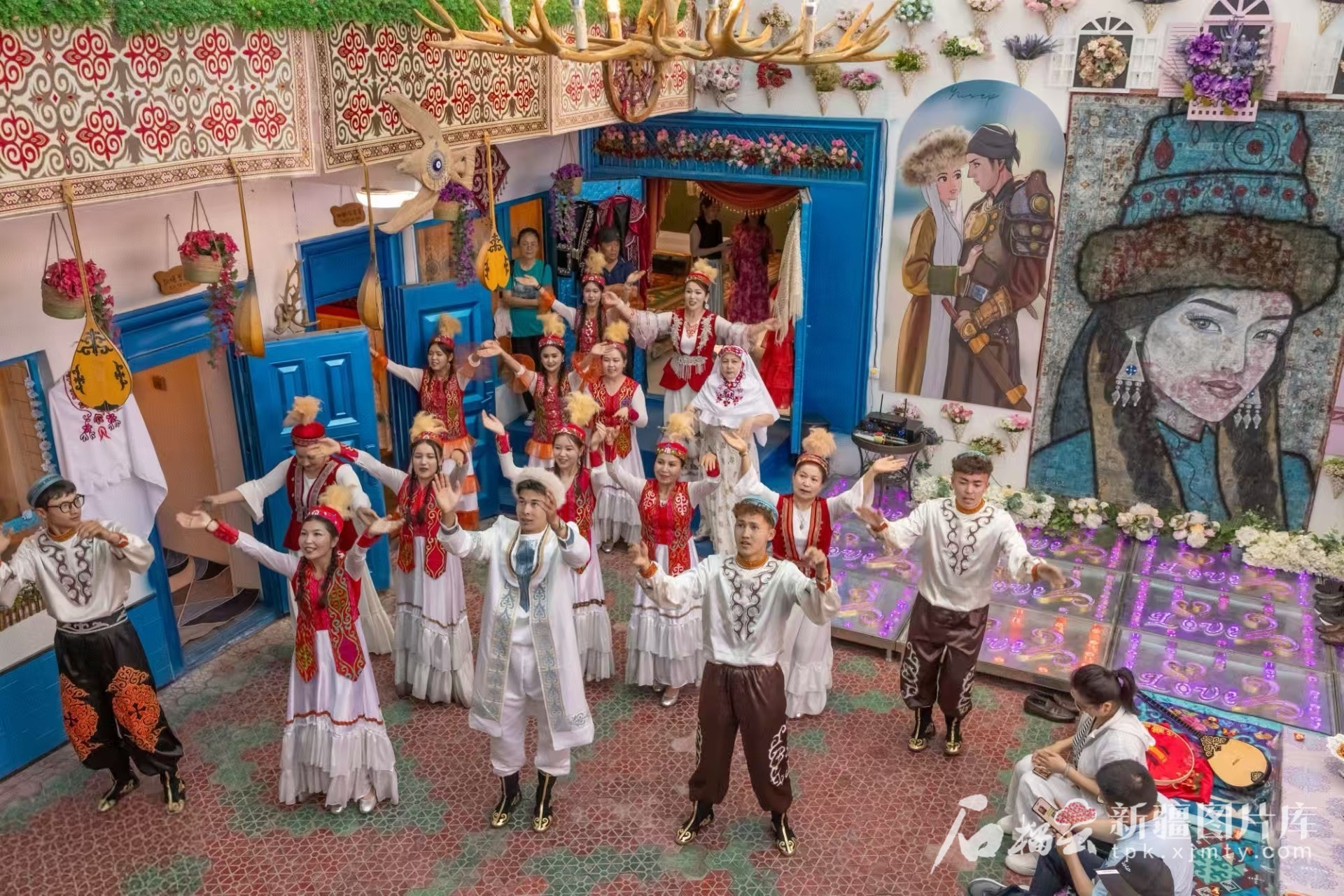尼勒克縣尼勒克鎮(zhèn)多爾布津村民宿里的歌舞表演。張偉民攝