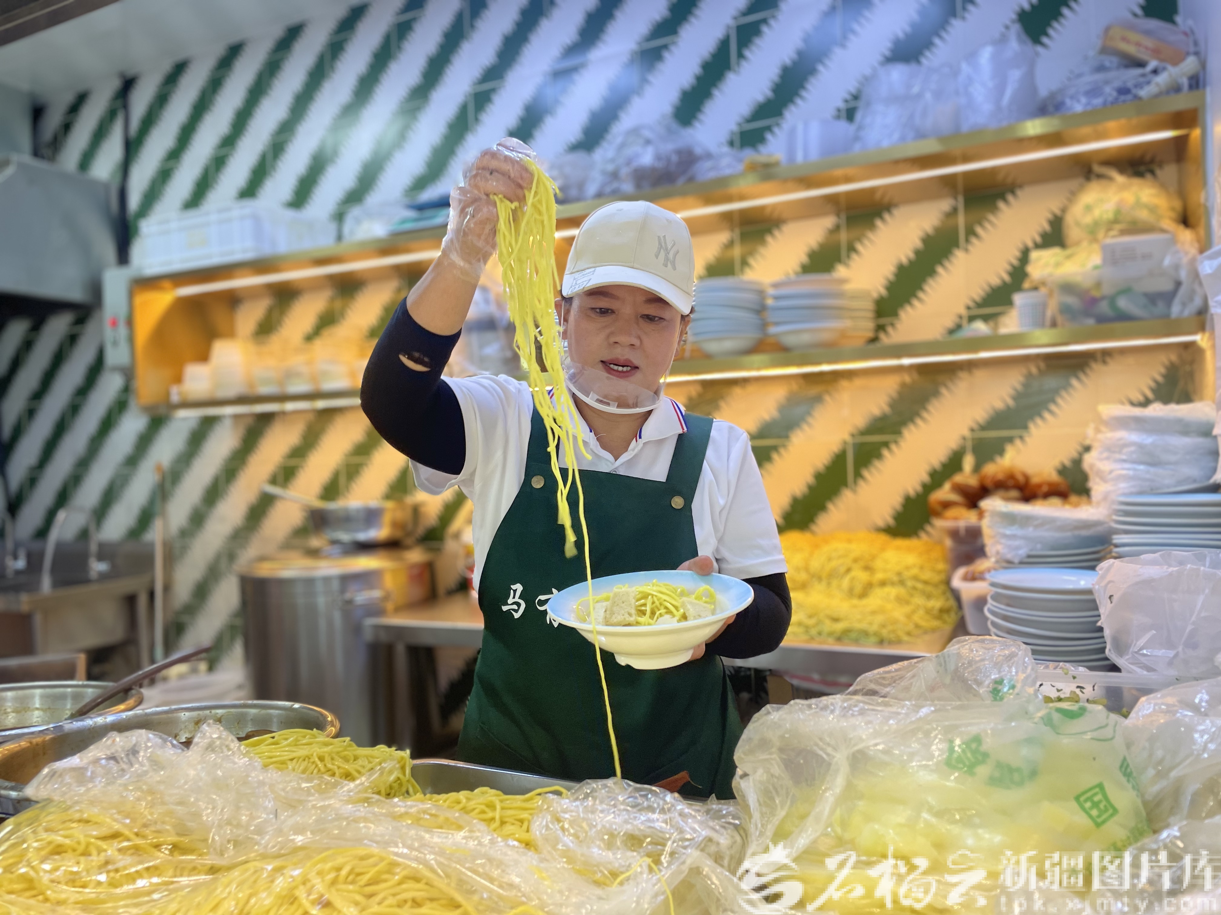 8月15日,烏魯木齊市米東區(qū)米古里水游城一期的馬有面餐飲店里,馬占梅正在為顧客配餐。天山網(wǎng)-新疆日?qǐng)?bào)記者 索蓉芝攝