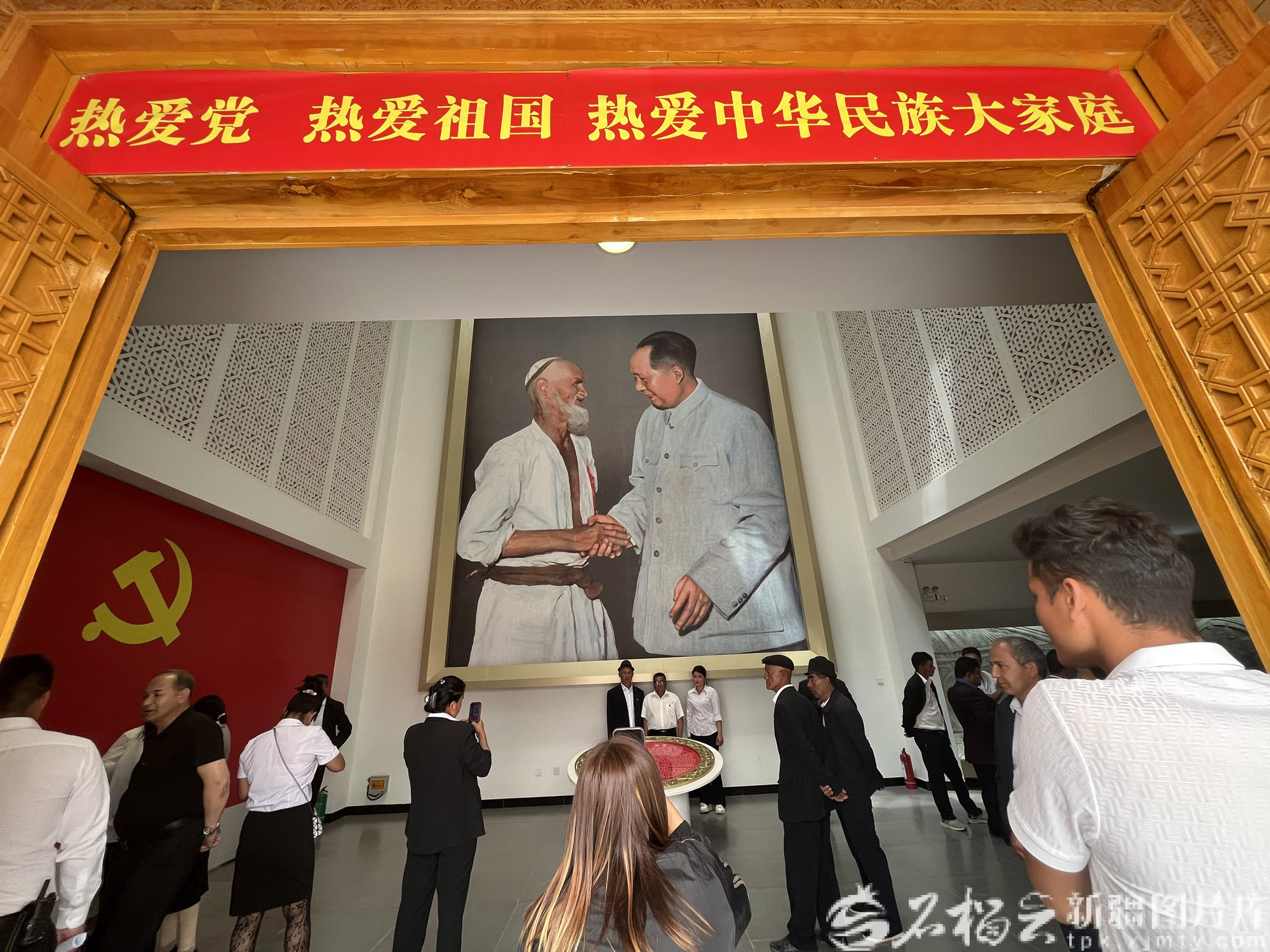8月17日黃昏,于田縣托格日尕孜鄉(xiāng)托格日尕孜村的庫(kù)爾班·吐魯木紀(jì)念館漸漸安靜下來(lái)。如克亞木·麥提賽地送走最后一批參觀者,轉(zhuǎn)身望向大廳中央——那張熟悉的畫(huà)像里,她的曾外祖父庫(kù)爾班·吐魯木緊握毛主席的手,側(cè)身凝望,目光熾熱。