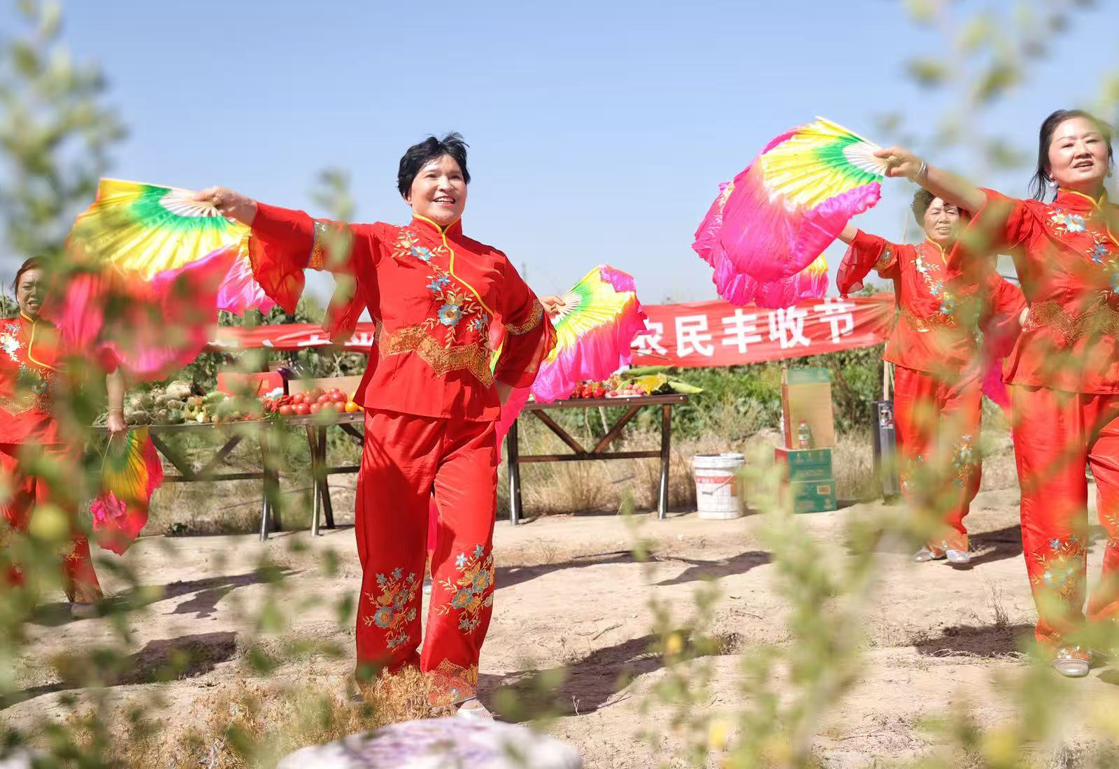 倉房溝村民在首屆采收節(jié)上表演扭秧歌。