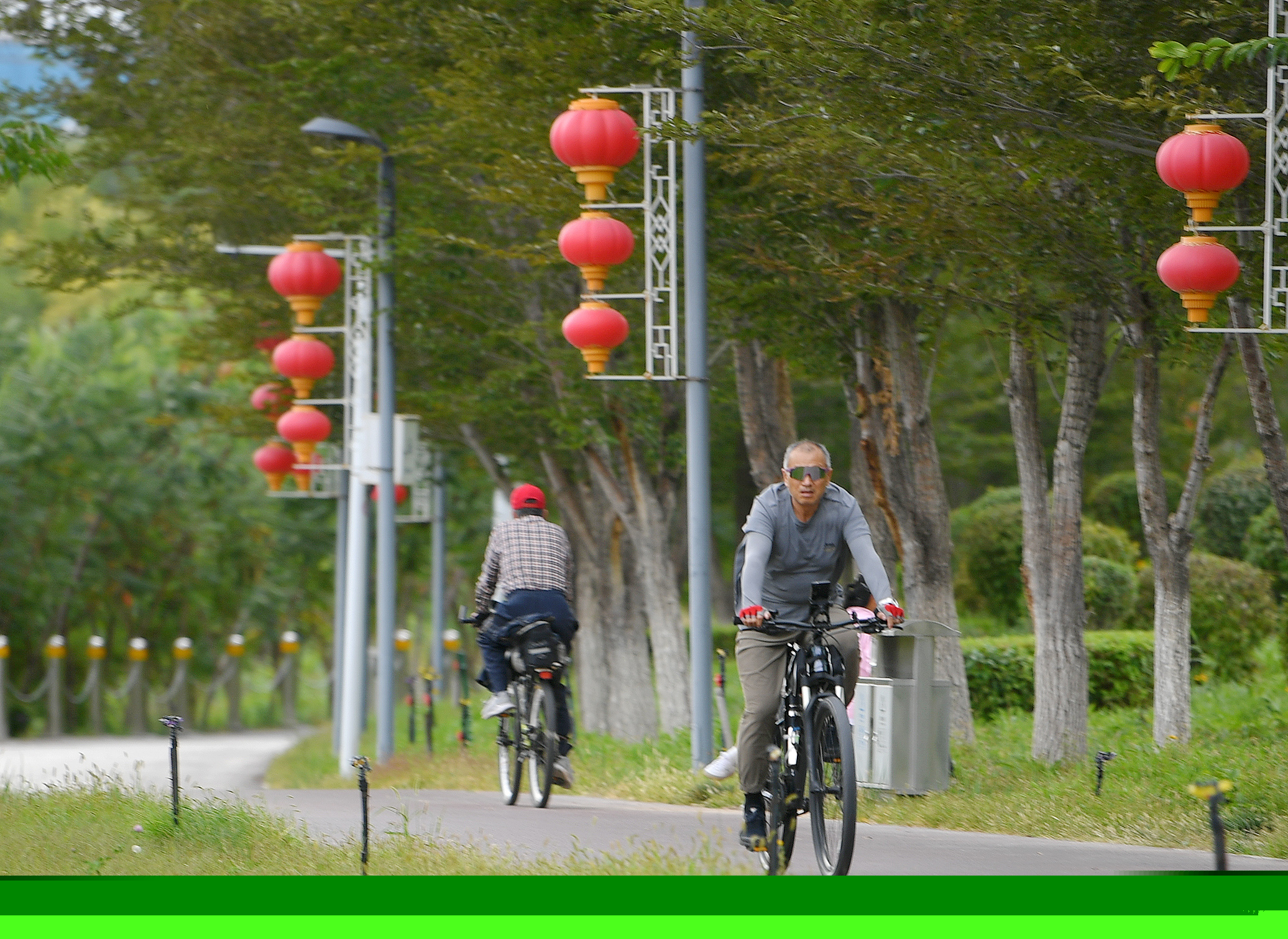 9月10日,市民在庭州生態(tài)綠谷騎行。