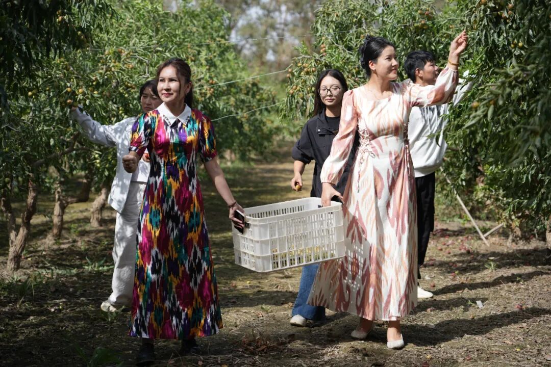 冬棗成熟后吸引了不少居民和游客前來體驗(yàn)采摘的樂趣。來自甘肅定西的游客張蕾正和伙伴們興致勃勃地在棗地里采摘冬棗。她說:“之前吃冬棗都是網(wǎng)購或超市買,從來沒有親自到冬棗基地來采摘過。這次來到大美若羌,這個(gè)被譽(yù)為‘中國紅棗之鄉(xiāng)’的地方,親自走進(jìn)種植地采摘冬棗,感覺特別有意義!這冬棗吃起來又脆又甜,一定要多帶些回去跟家人朋友分享,嘗嘗這份來自若羌的甜蜜?!?/p>