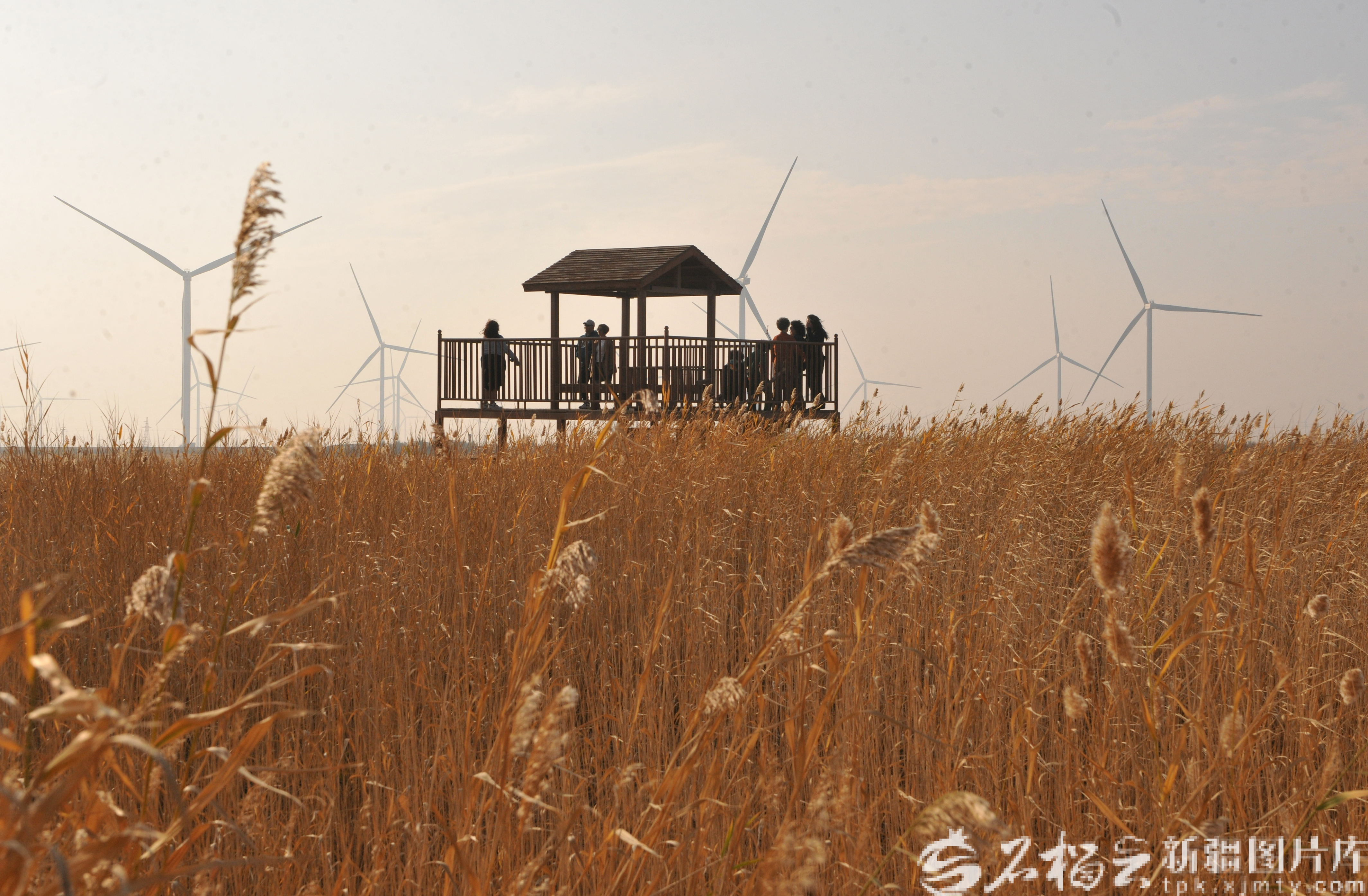 烏魯木齊柴窩堡湖國家濕地公園:蘆葦披“金”風車轉 生態(tài)美景引客來