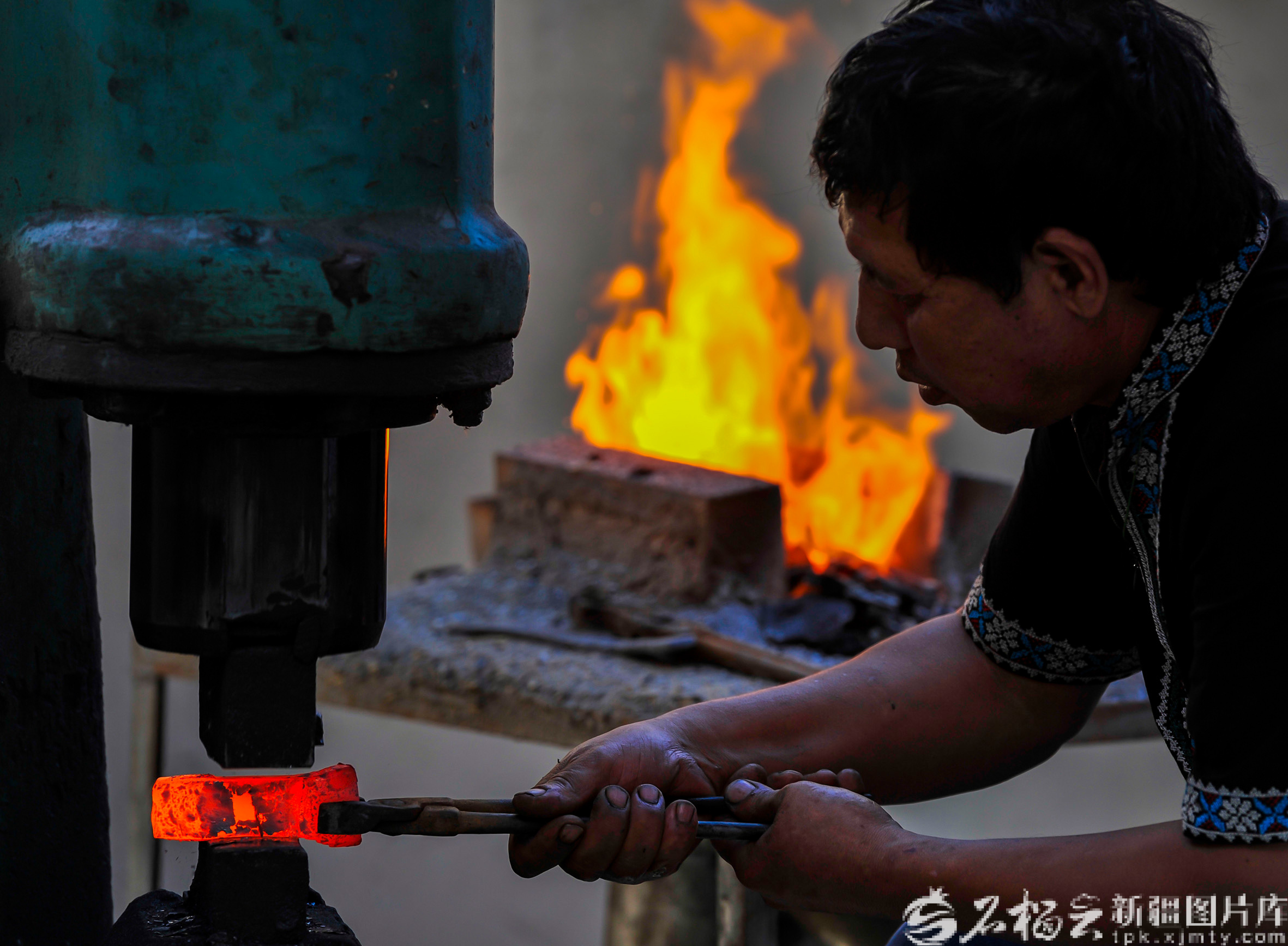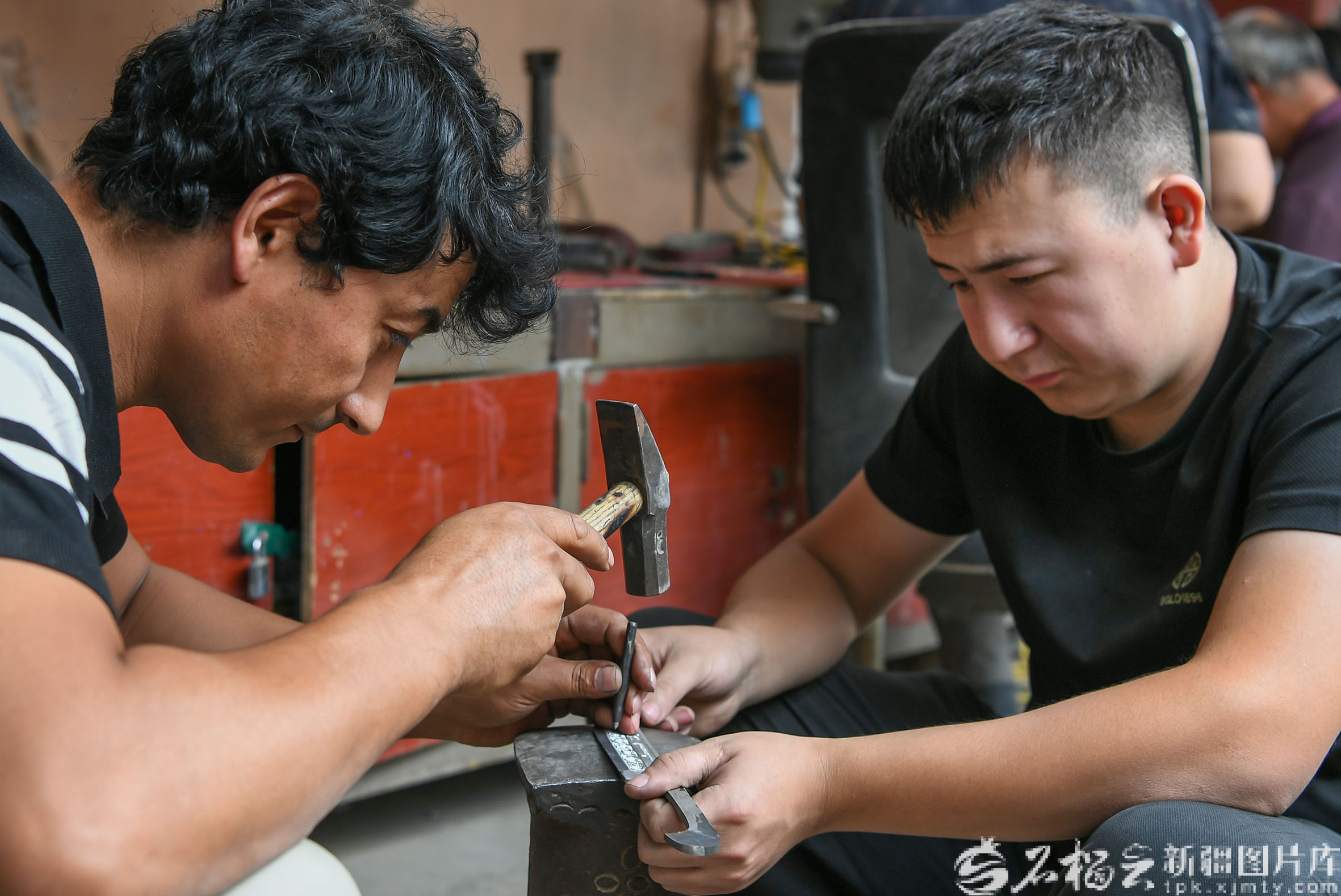 9月19日,刀匠在工坊內(nèi)制作小刀。天山網(wǎng)-新疆日?qǐng)?bào)記者 約提克爾·尼加提攝