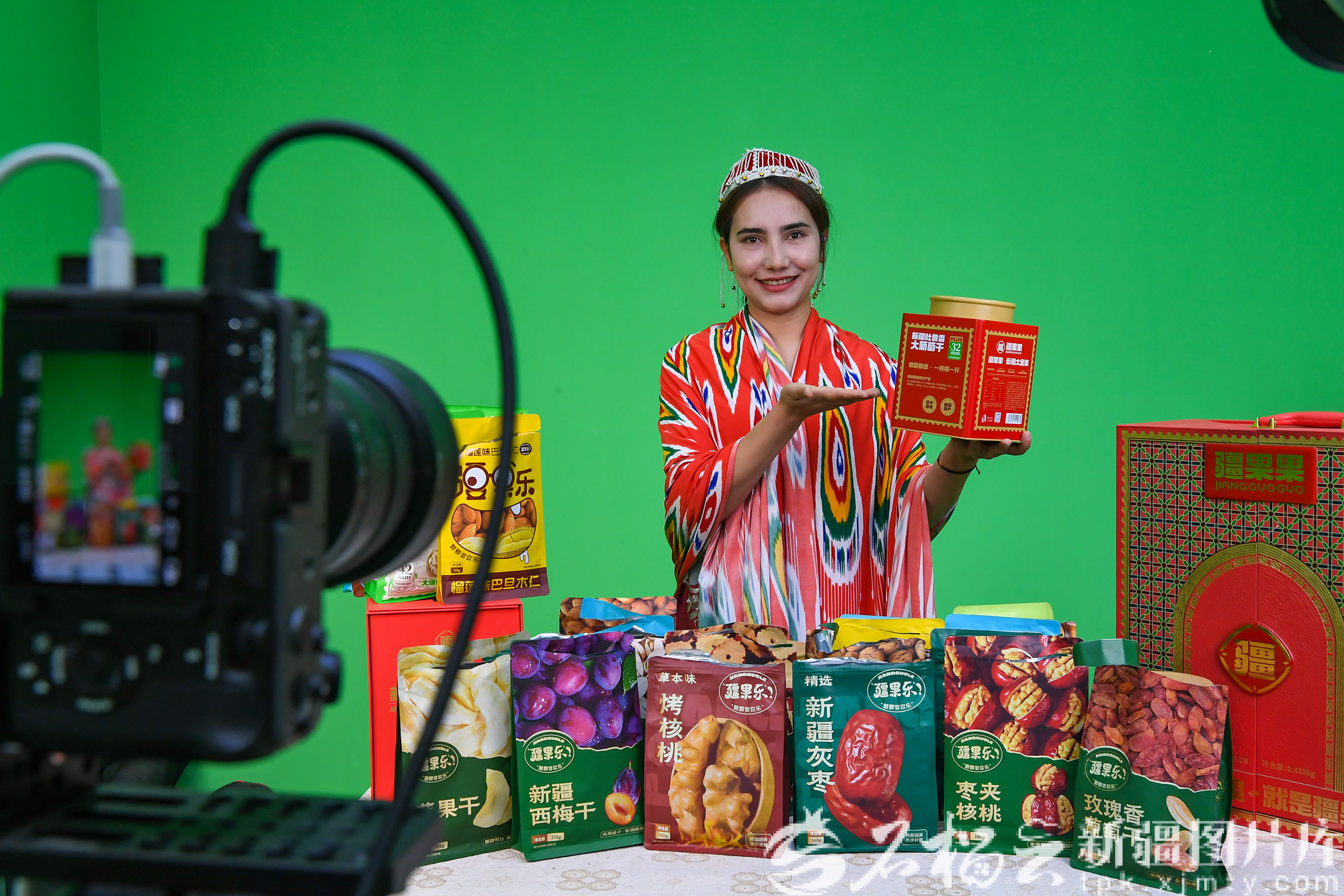 9月20日,員工利用抖音直播平臺(tái)介紹喀什疆果果農(nóng)業(yè)科技有限公司各類堅(jiān)果產(chǎn)品。