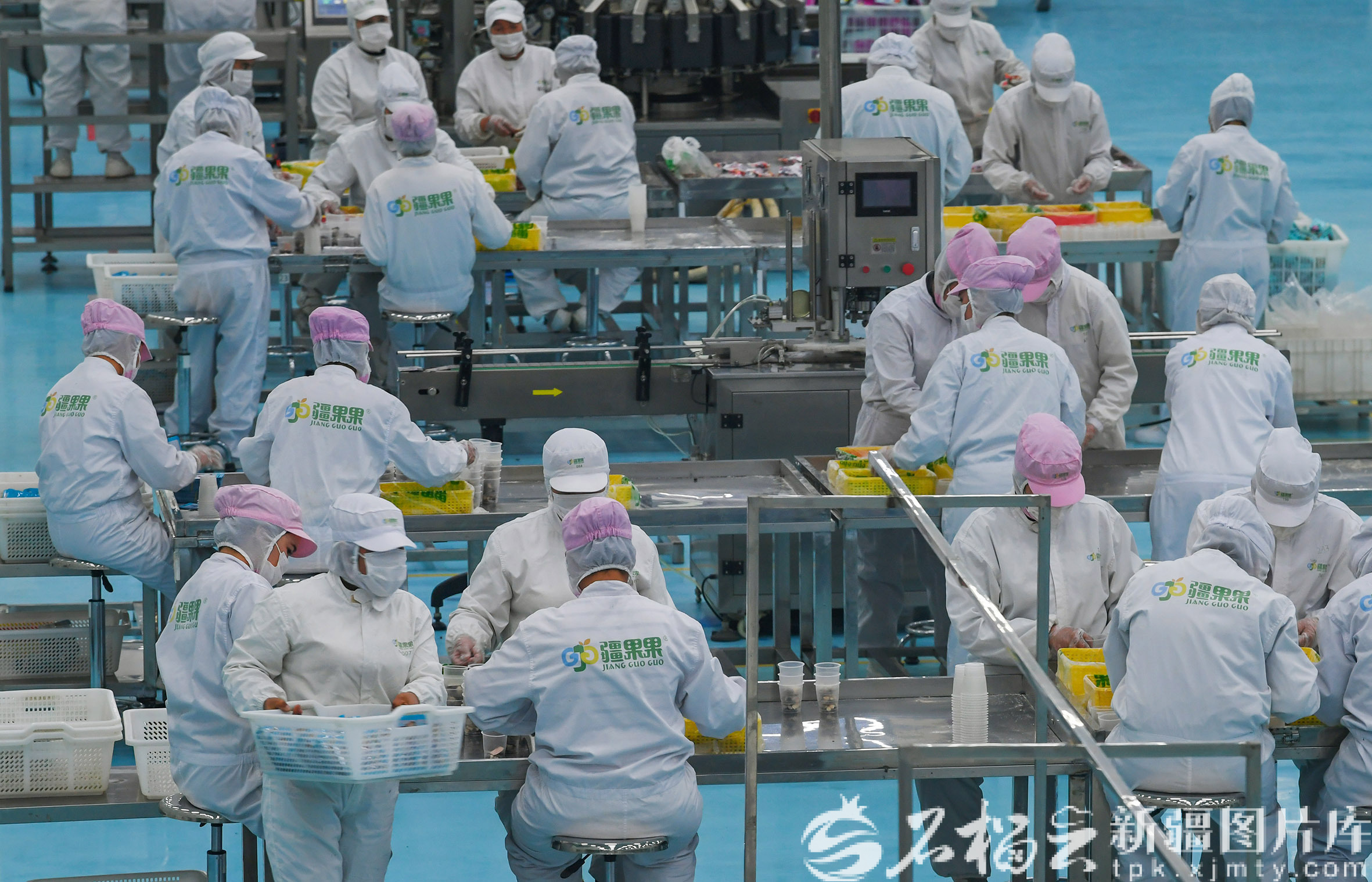 9月20日,員工在位于疏附縣的喀什疆果果農(nóng)業(yè)科技有限公司生產(chǎn)車間正篩選、加工各類堅(jiān)果和林果產(chǎn)品。