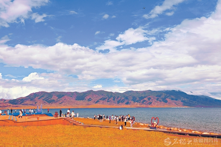 9月20日,游客在賽里木湖景區(qū)游玩。金秋時節(jié),賽里木湖湛藍(lán)的湖水與岸邊金色草甸構(gòu)成了一幅絢麗的畫卷。栗衛(wèi)平攝