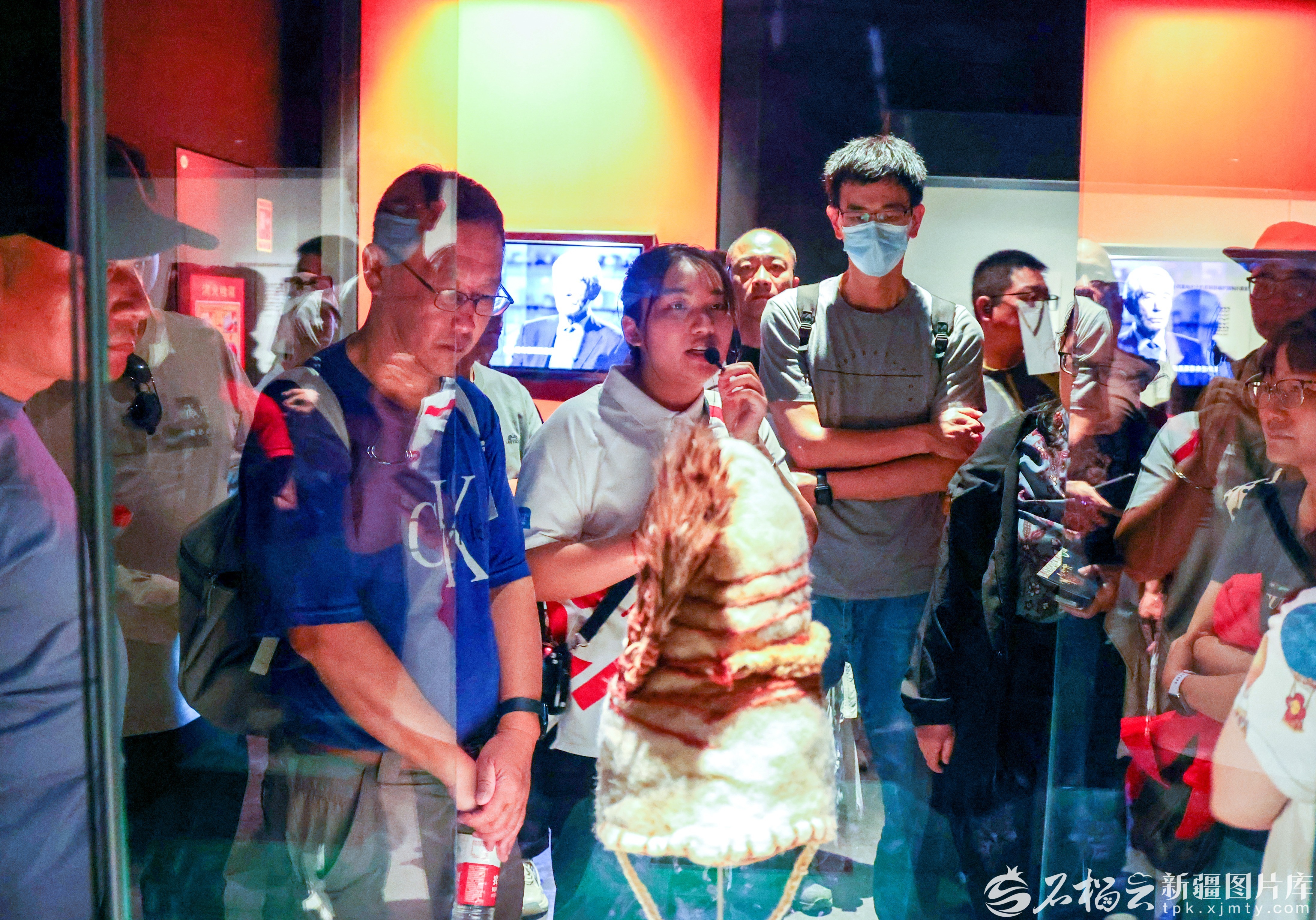 10月3日,和田博物館講解員熱情地為游客講解。這個假期,該博物館工作人員堅守崗位,為游客提供優(yōu)質(zhì)服務(wù)。胡禮政攝