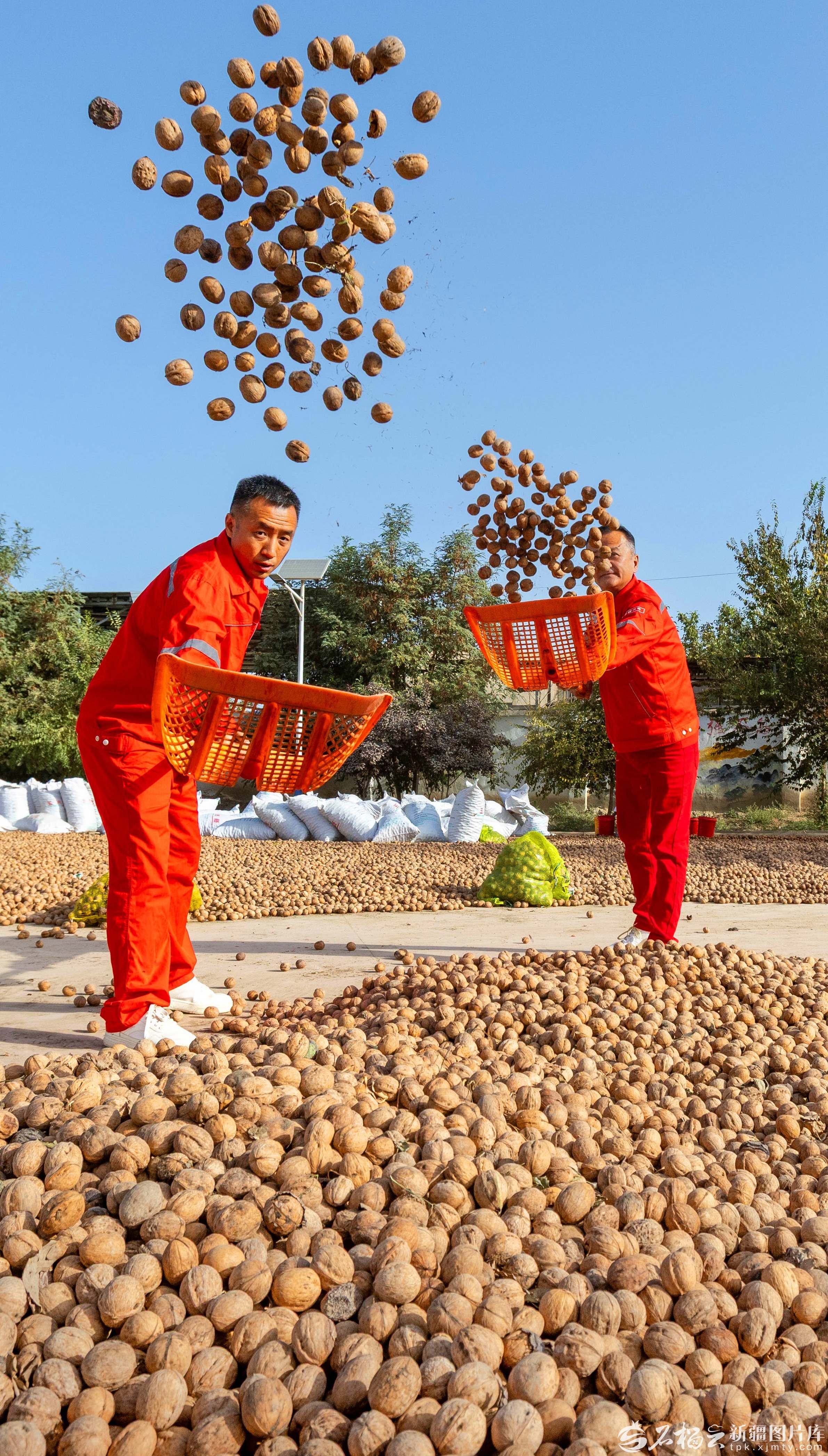 10月1日,中石油新疆油田公司駐澤普縣波斯喀木鄉(xiāng)庫其村工作隊隊員幫助村民晾曬核桃。假日期間,駐村工作隊隊員忙碌在田間地頭,為群眾辦實事解難題。 張昀攝