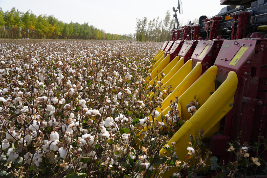“我們基地今年種了1.4萬畝的棉花,畝產(chǎn)450公斤左右。從10月6日開始采收,今天有5臺機器在不同的地塊里正在進行采收作業(yè),一臺采棉機一天可以采180畝,大概20天左右能夠收完,采收率在95%左右。今年的棉桃結(jié)得又大又飽滿,看著就心里踏實,每畝地的收益大概在2600元左右。”據(jù)羌都棗業(yè)二廠廠長陳興志介紹,為了保障棉花的順利采收,基地還聯(lián)系了加油車做好加油保障,采取人休機不休的方式,24個小時不間斷作業(yè),爭取在最短時間內(nèi)完成棉花采收工作。