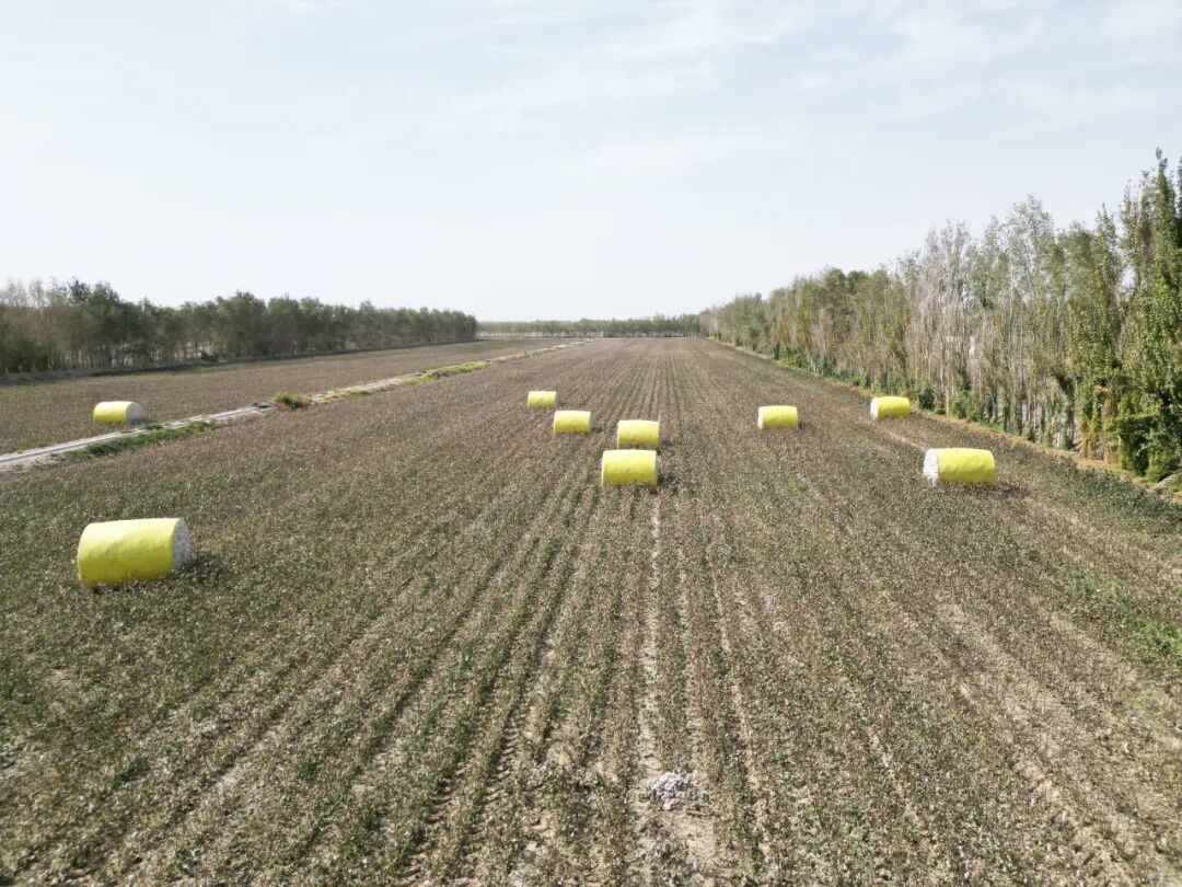 10月9日,若羌縣瓦石峽鎮(zhèn)塔什薩依村羌都棗業(yè)的棉花種植基地里,機器轟鳴,采棉機在田間來回穿梭,雪白的棉花被迅速采收,打包成捆。