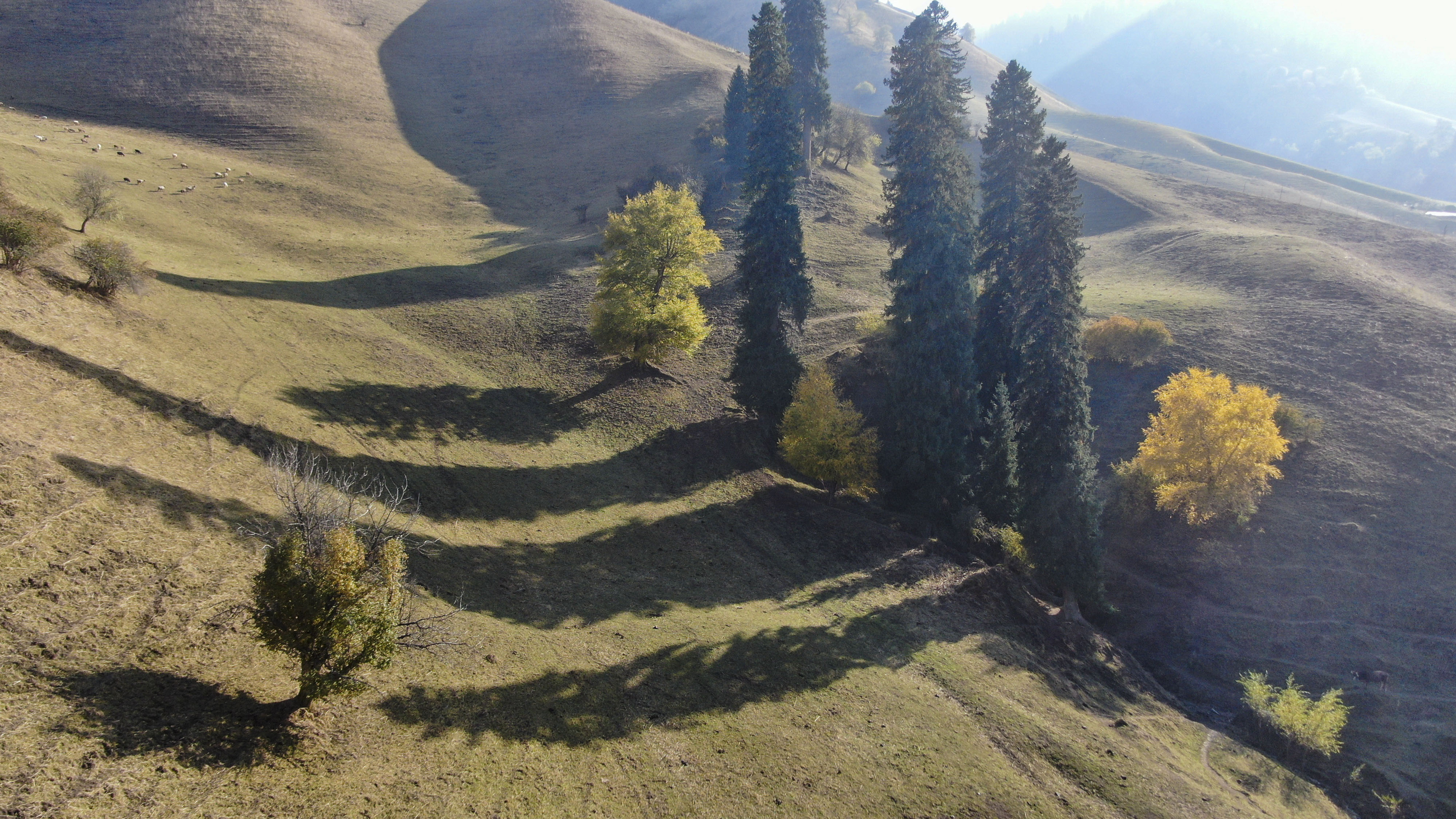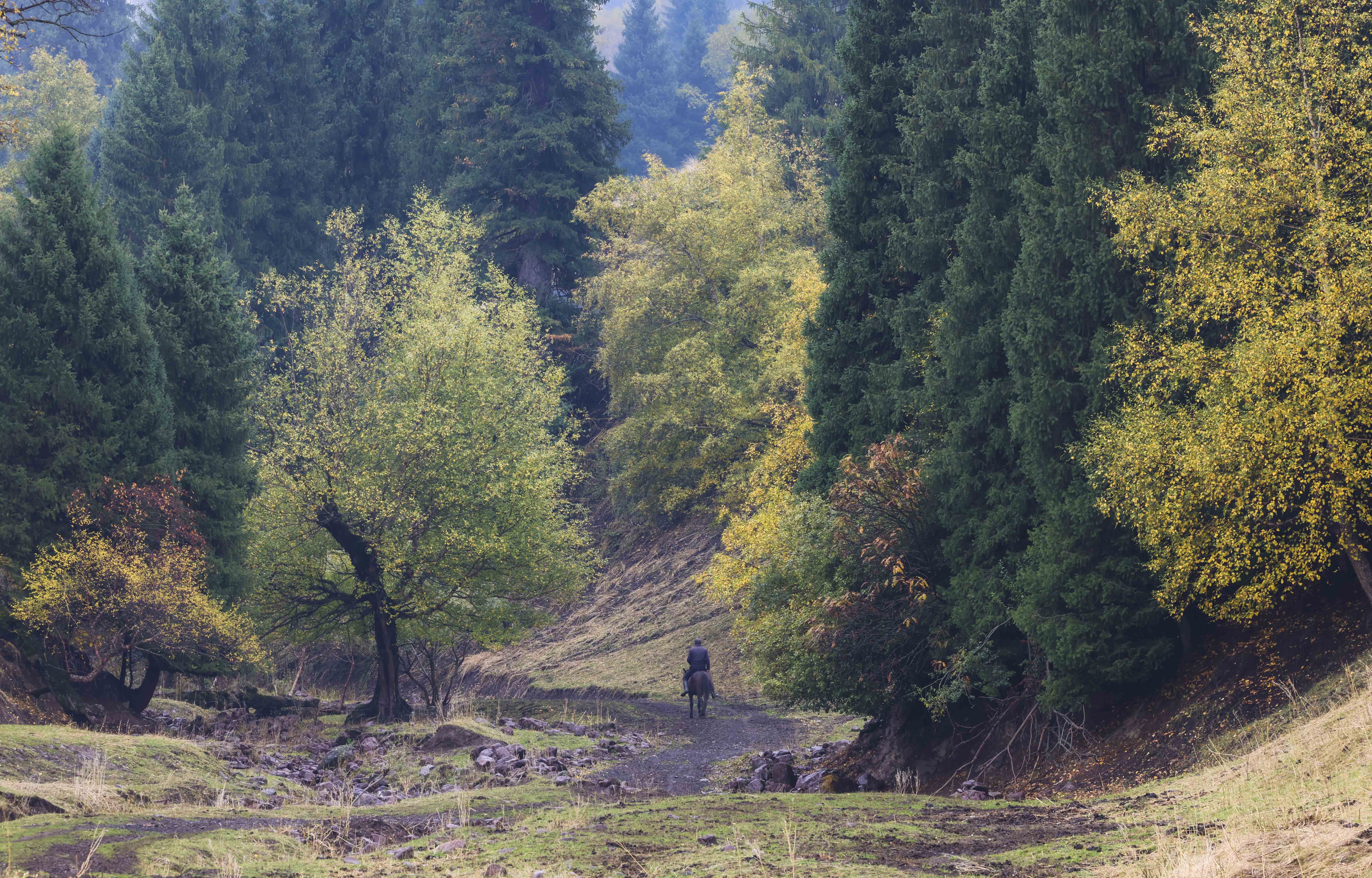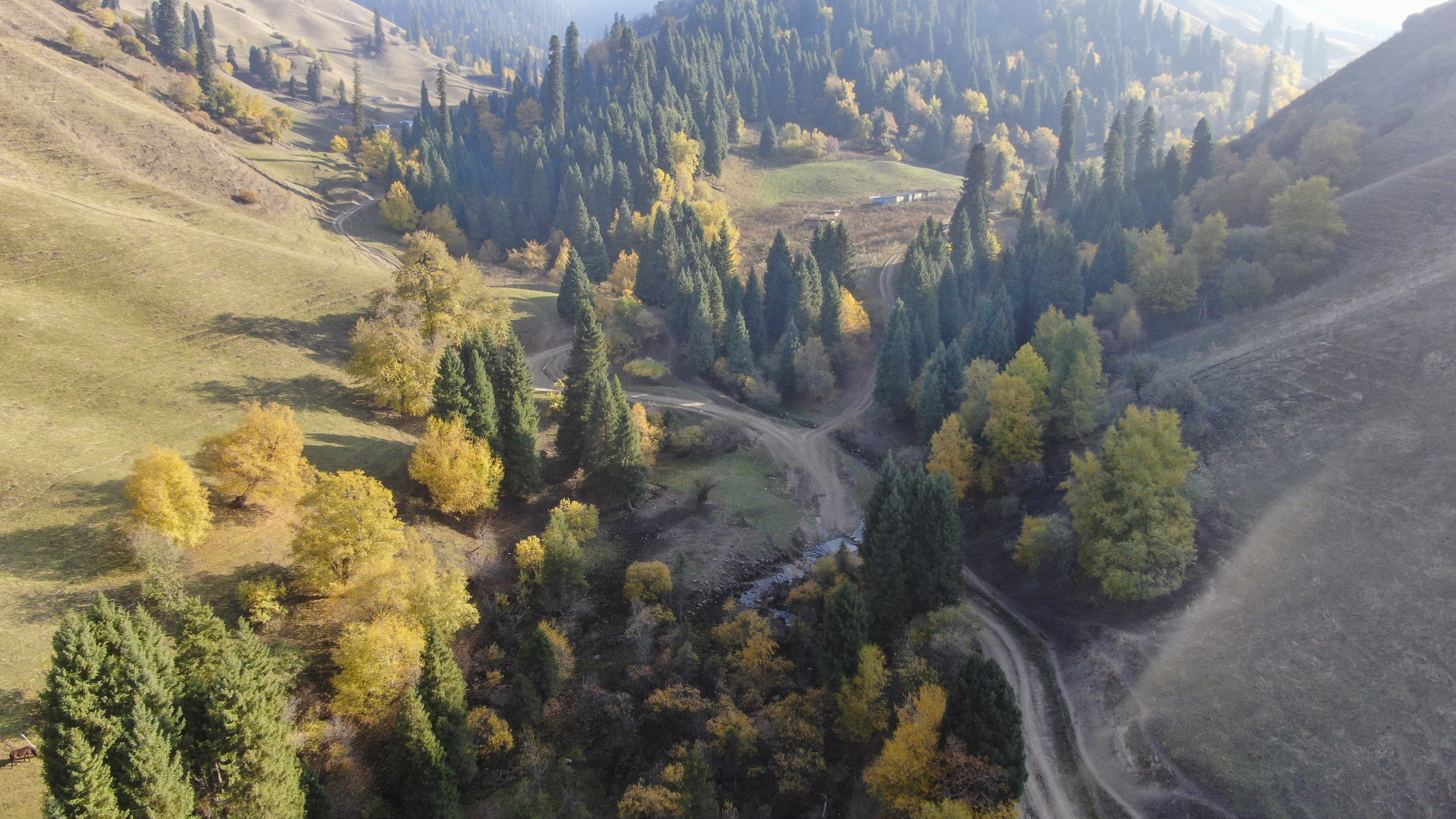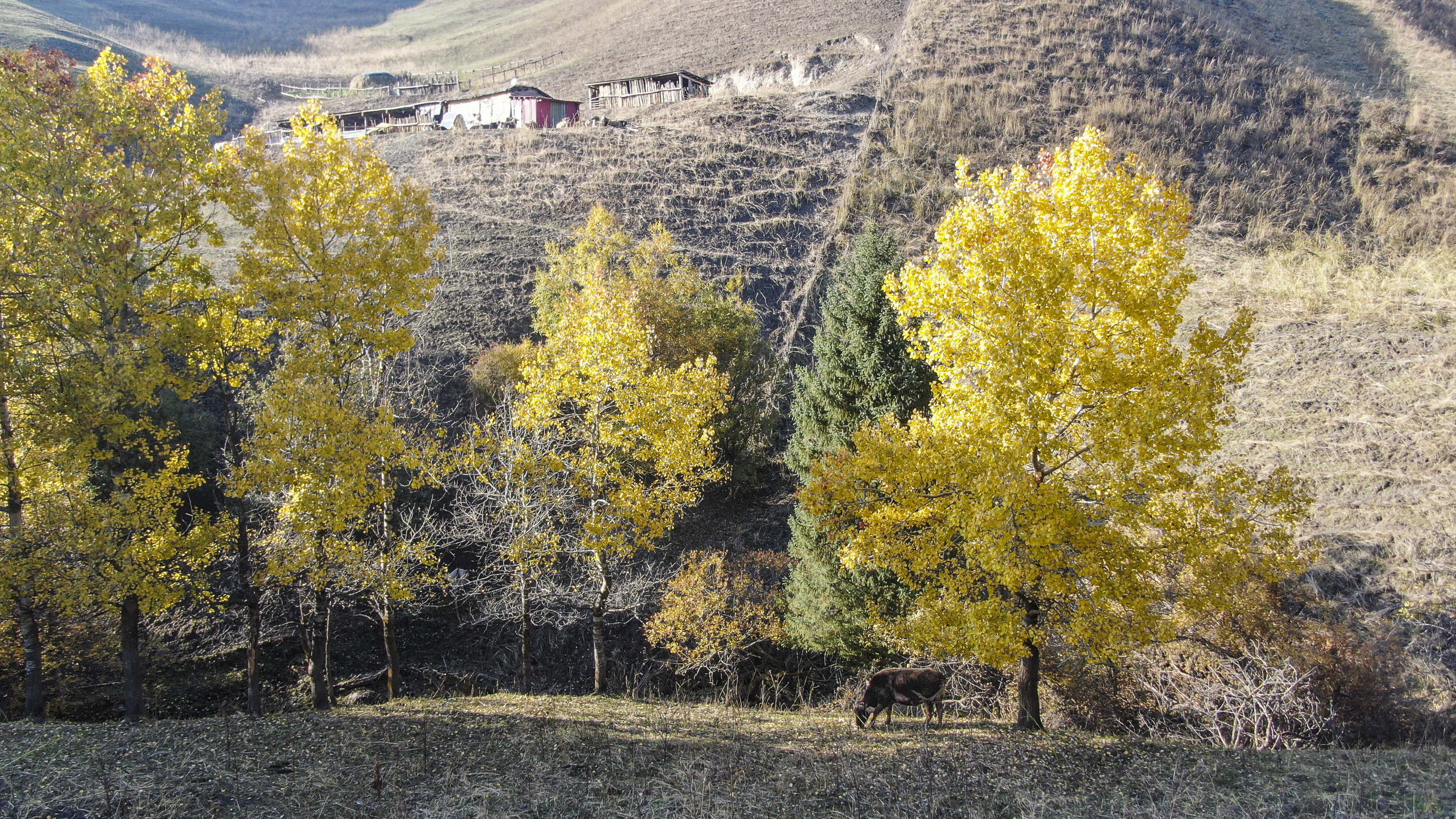 深秋時(shí)節(jié),大地褪去盛夏的濃綠,那拉提景區(qū)卻迎來(lái)了一年中最絢爛的“色彩季”,夏日單一的蔥郁已被秋日豐富的層次所取代。10月20日,景區(qū)內(nèi)河谷草原、盤(pán)龍谷道等峽谷地帶的樹(shù)木已悄然換上“金色外衣”,金黃、橙紅、淺褐等色彩交織錯(cuò)落,將山谷裝扮得五彩斑斕,與終年翠綠的松樹(shù)形成鮮明對(duì)比、交相呼應(yīng),勾勒出一幅壯闊又靈動(dòng)的秋日畫(huà)卷。
